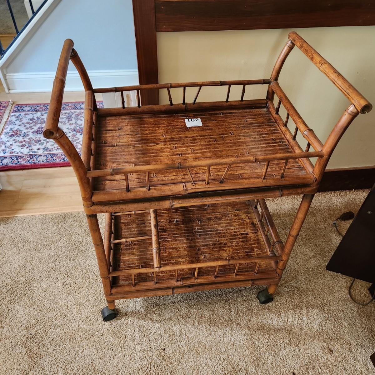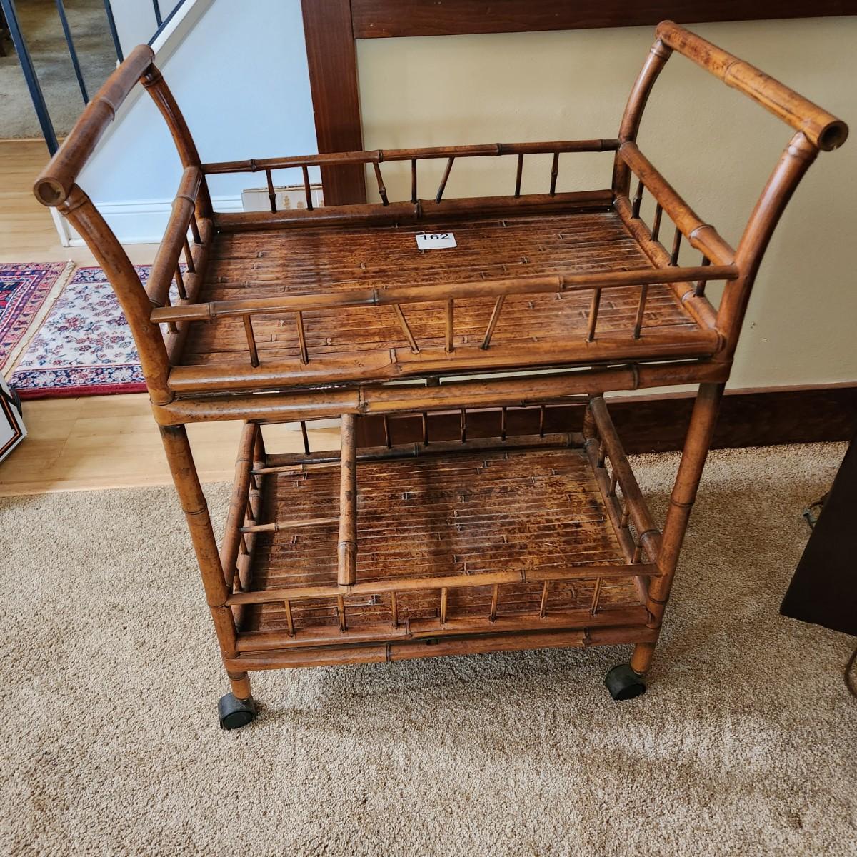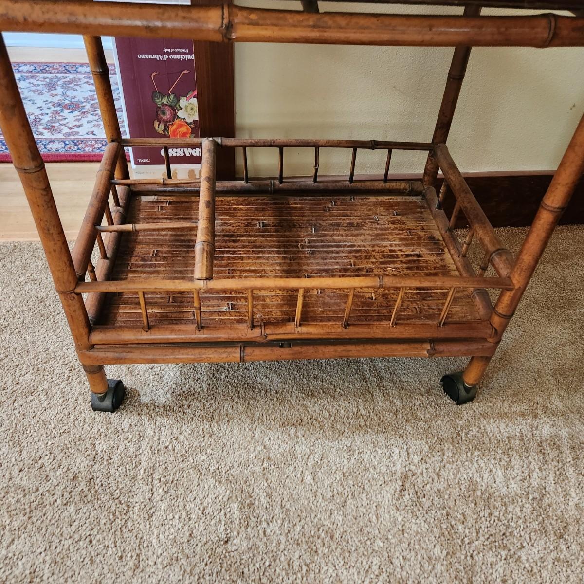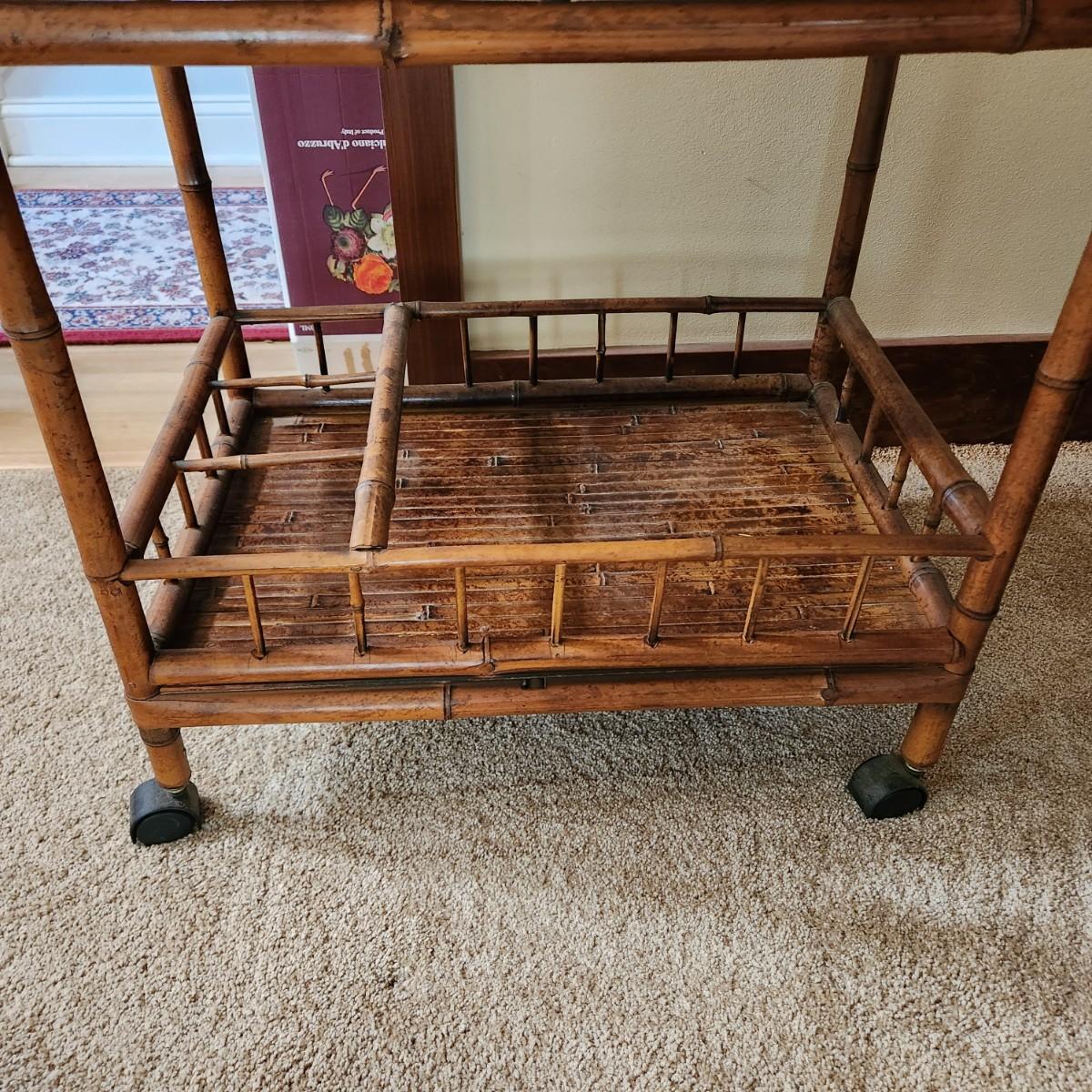 Vintage Rattan Bamboo Tea Bar Serving Cart Tiki Bar Decor on Casters