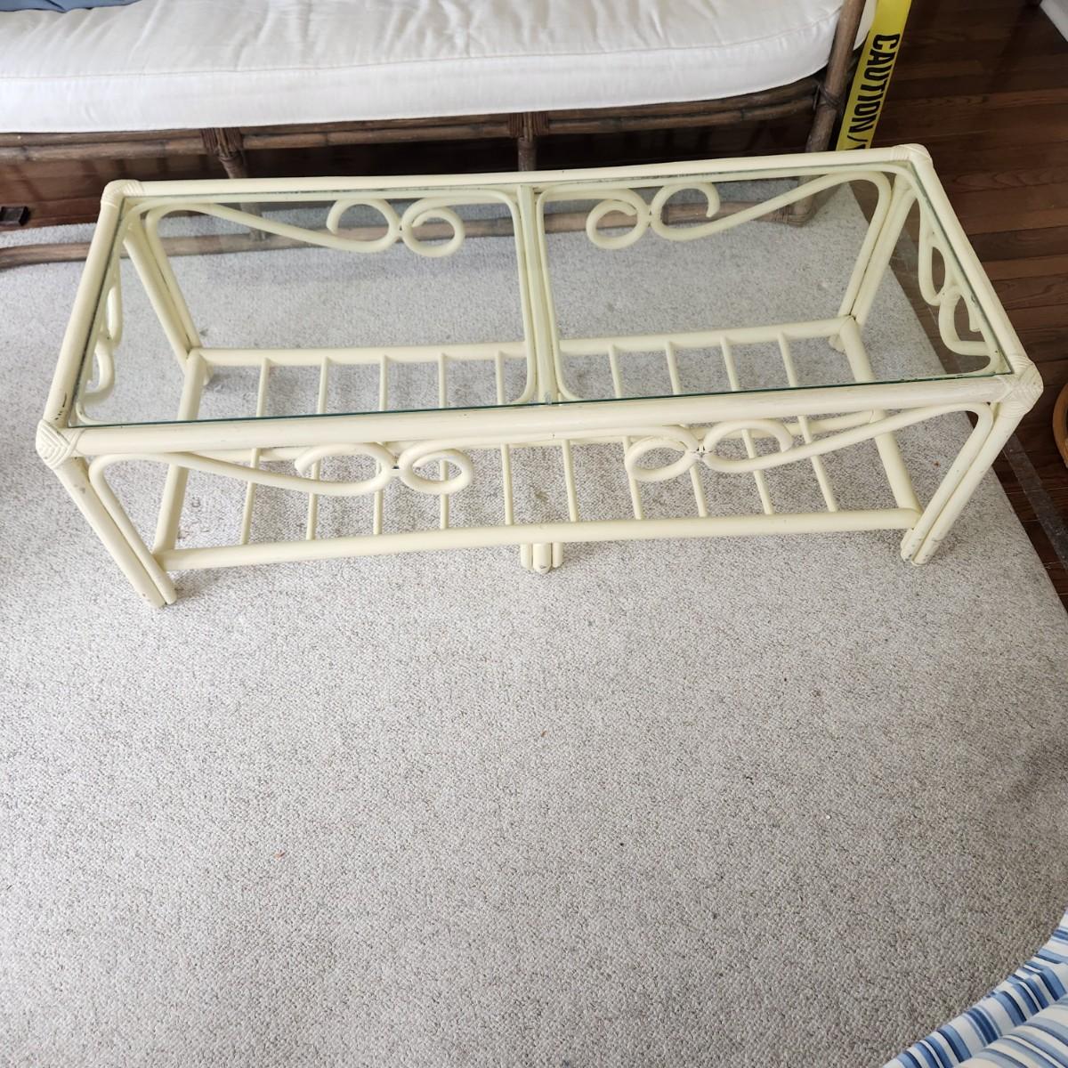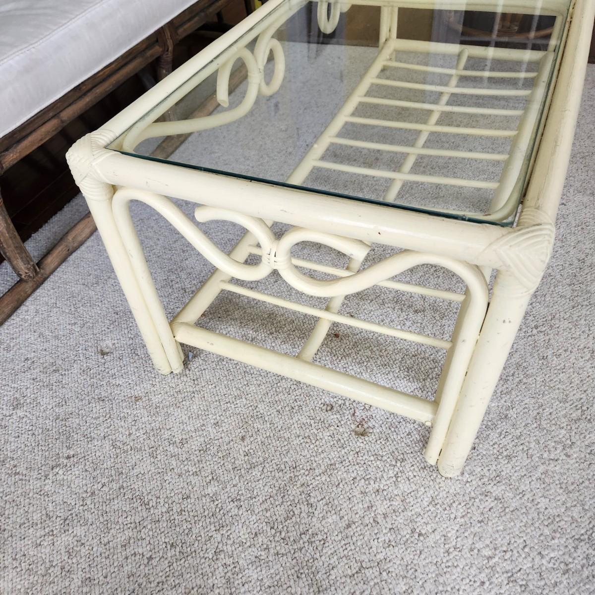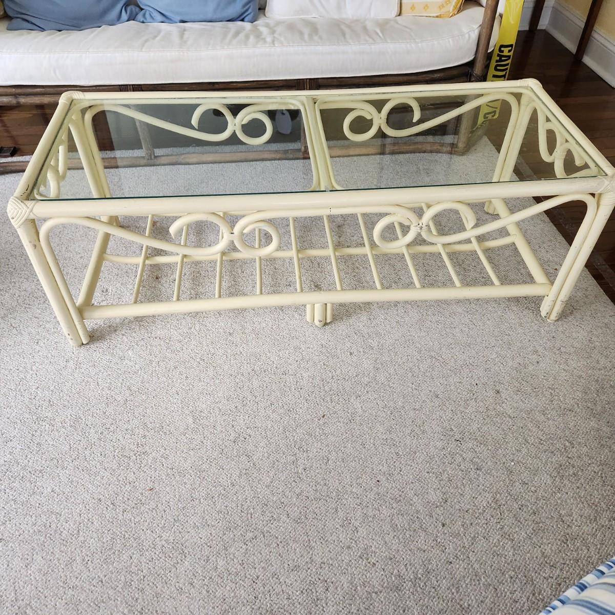 Vintage Rattan Bentwood Coffee Table Glass top 48x19x16