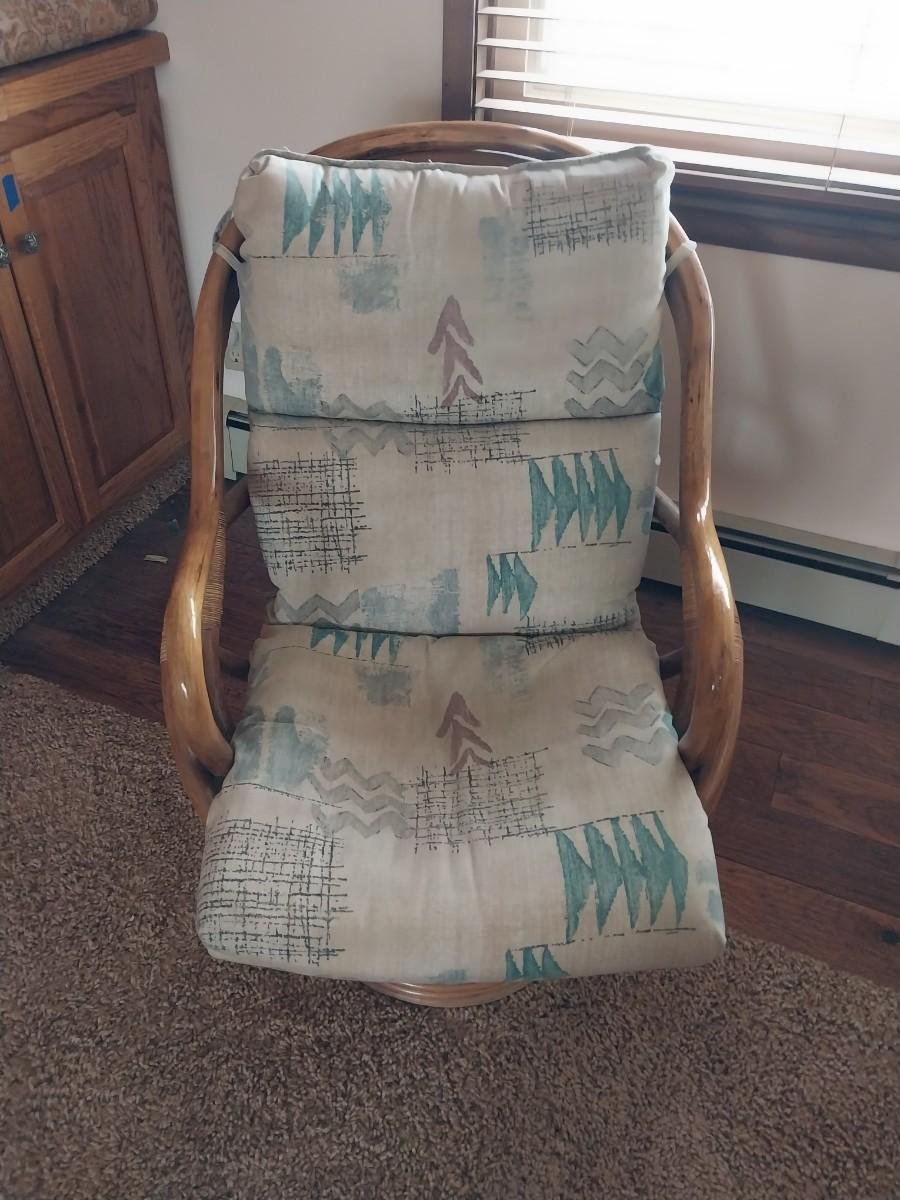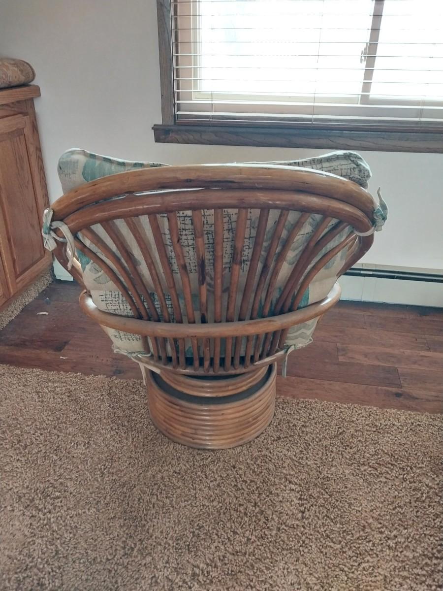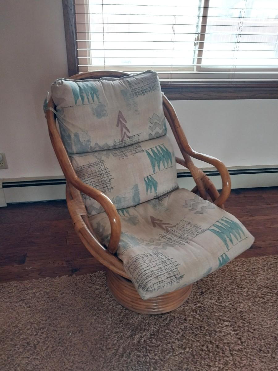 VINTAGE RATTAN SWIVEL ARM CHAIR