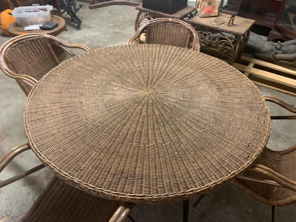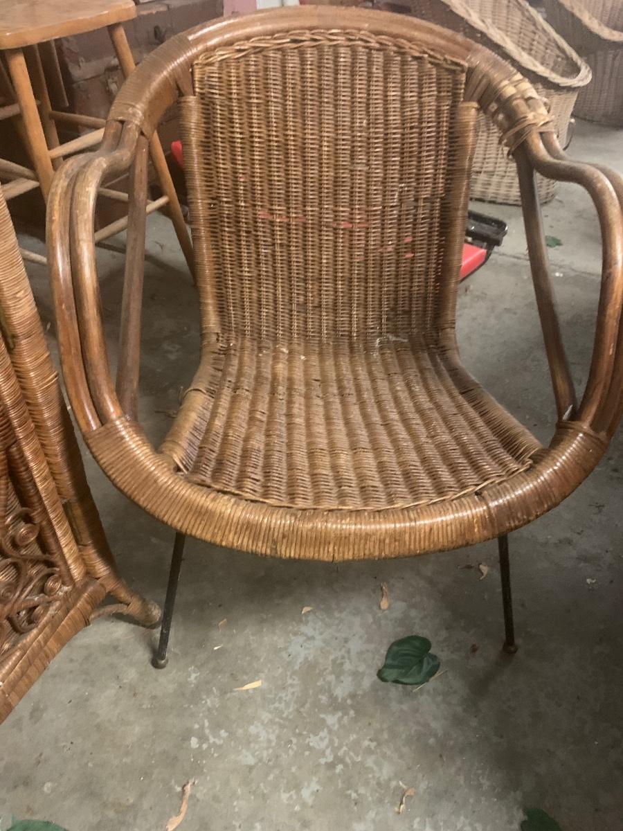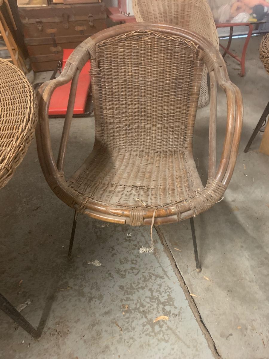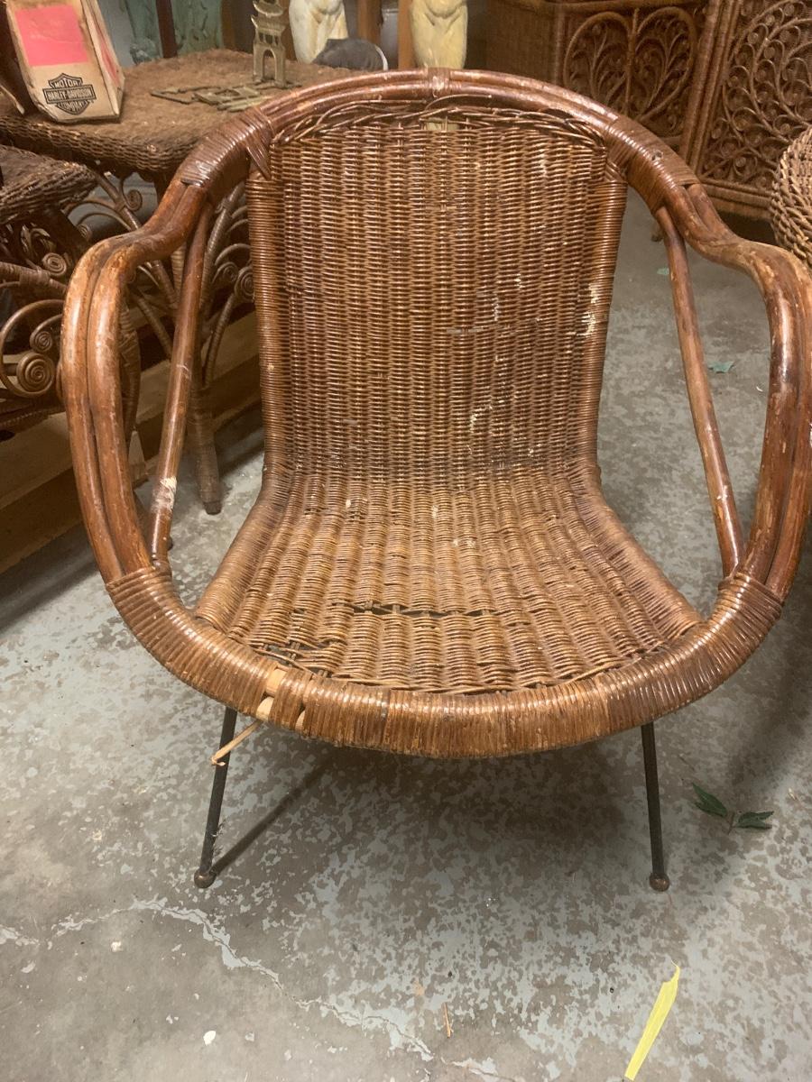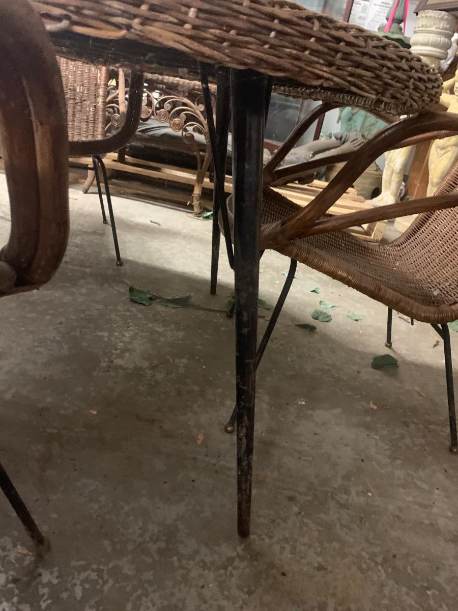 The table and chairs were used at the tiki house on the property. They are in good vintage condition. There is some wicker on the chairs that need repair.