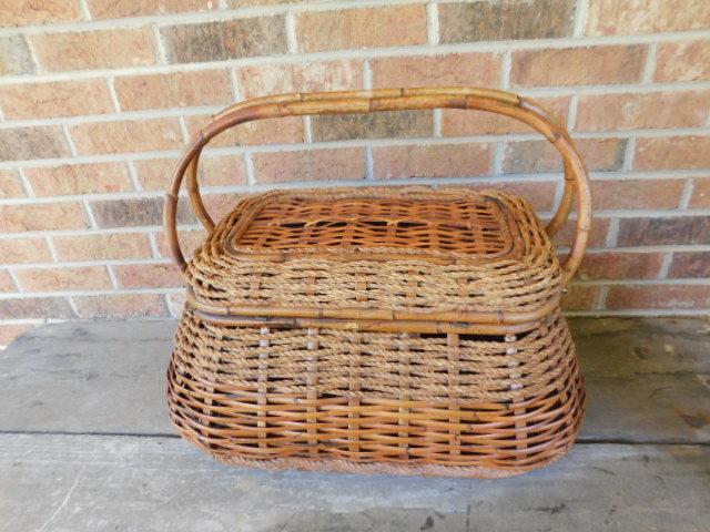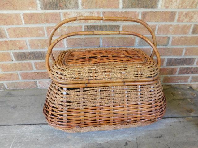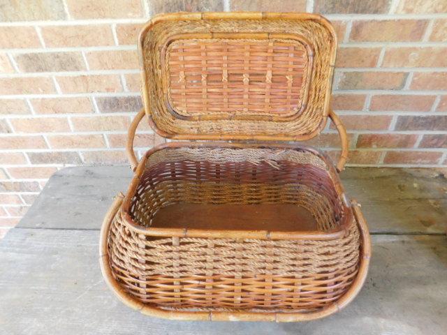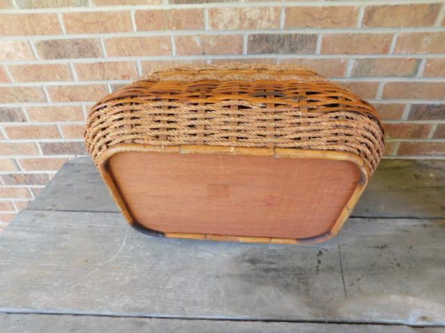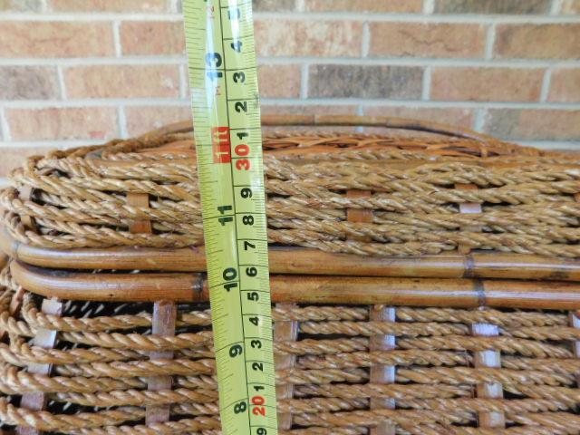 Vintage Rattan Wicker Weave and Rope Picknick Basket 21"x12" may have some wear or fraying