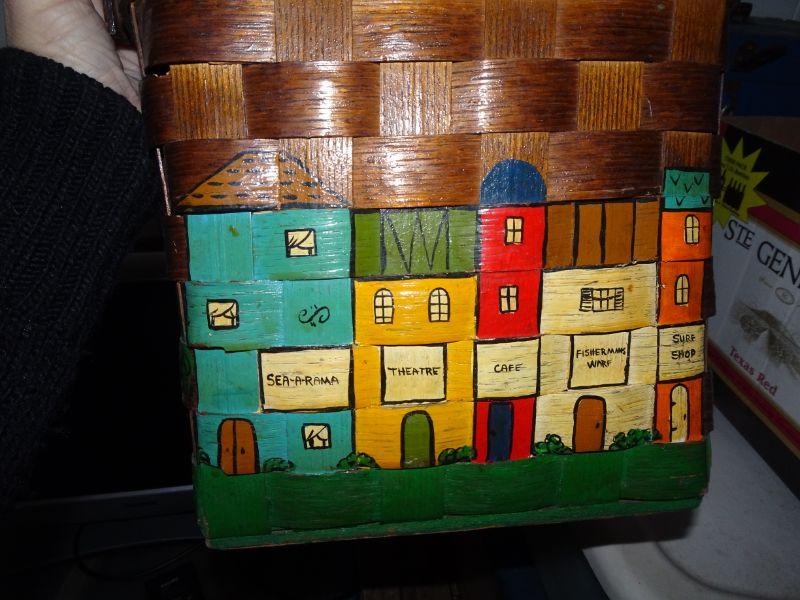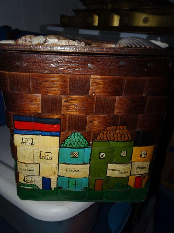 Vintage Rattan & Wood Box Purse, Galveston Historical Spots. Eibands, SeaARama, Bishops Palace