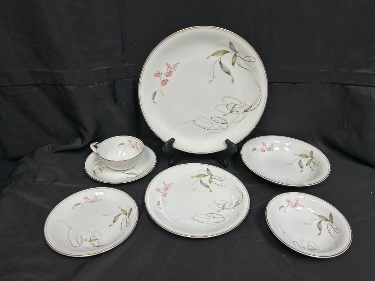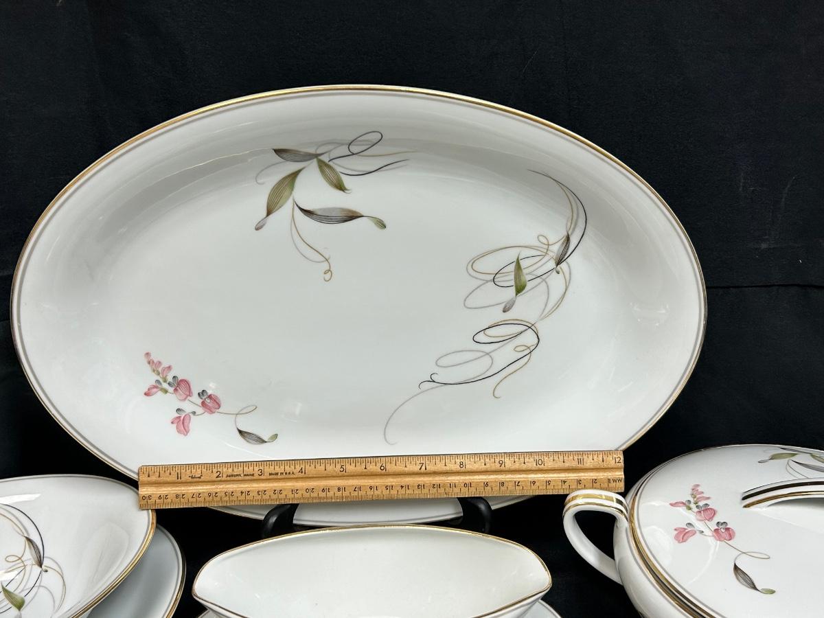 Vintage RC Royal China Noritake Japan Service for 12 China Set with Serving Pieces Pink Flower Black Swirl