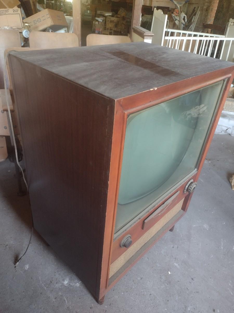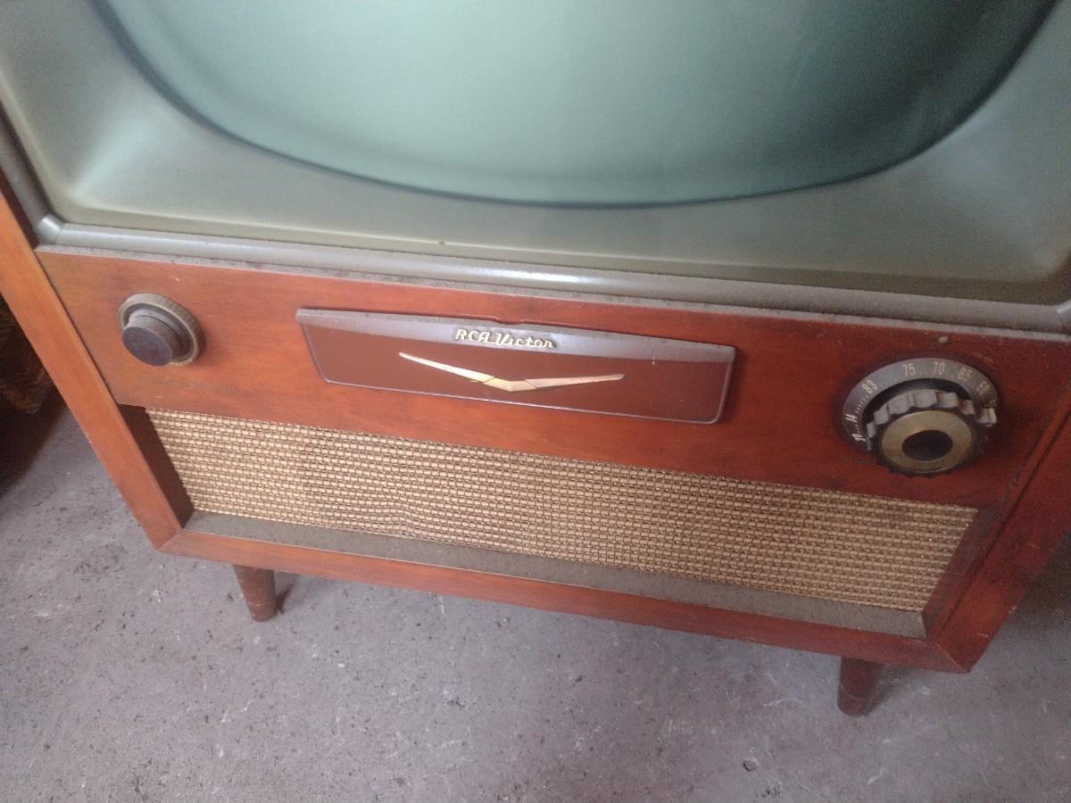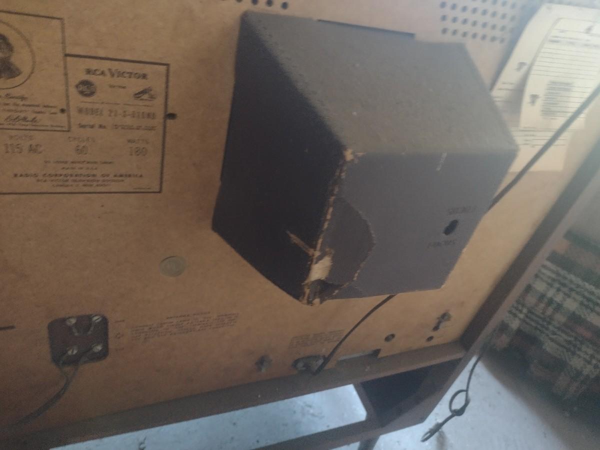 Vintage RCA Victor Model 21-S TV Console in Cherry Cabinet. Condition unknown. Upstairs item. Bring assistance to remove from building