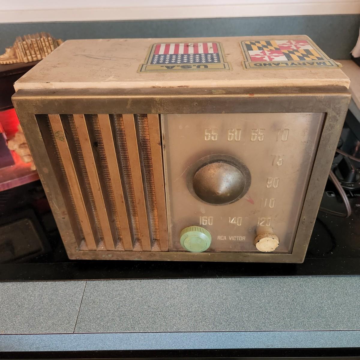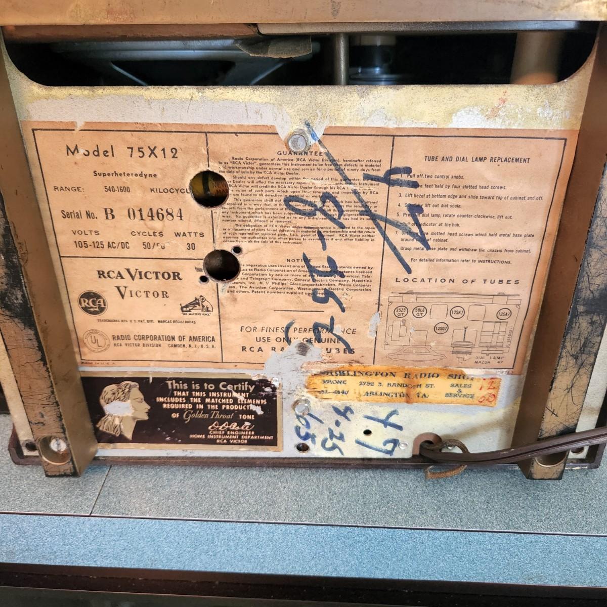 RCA Victor model 75X12 Golden Throat AM Table Radio. Both show age/use wear.
