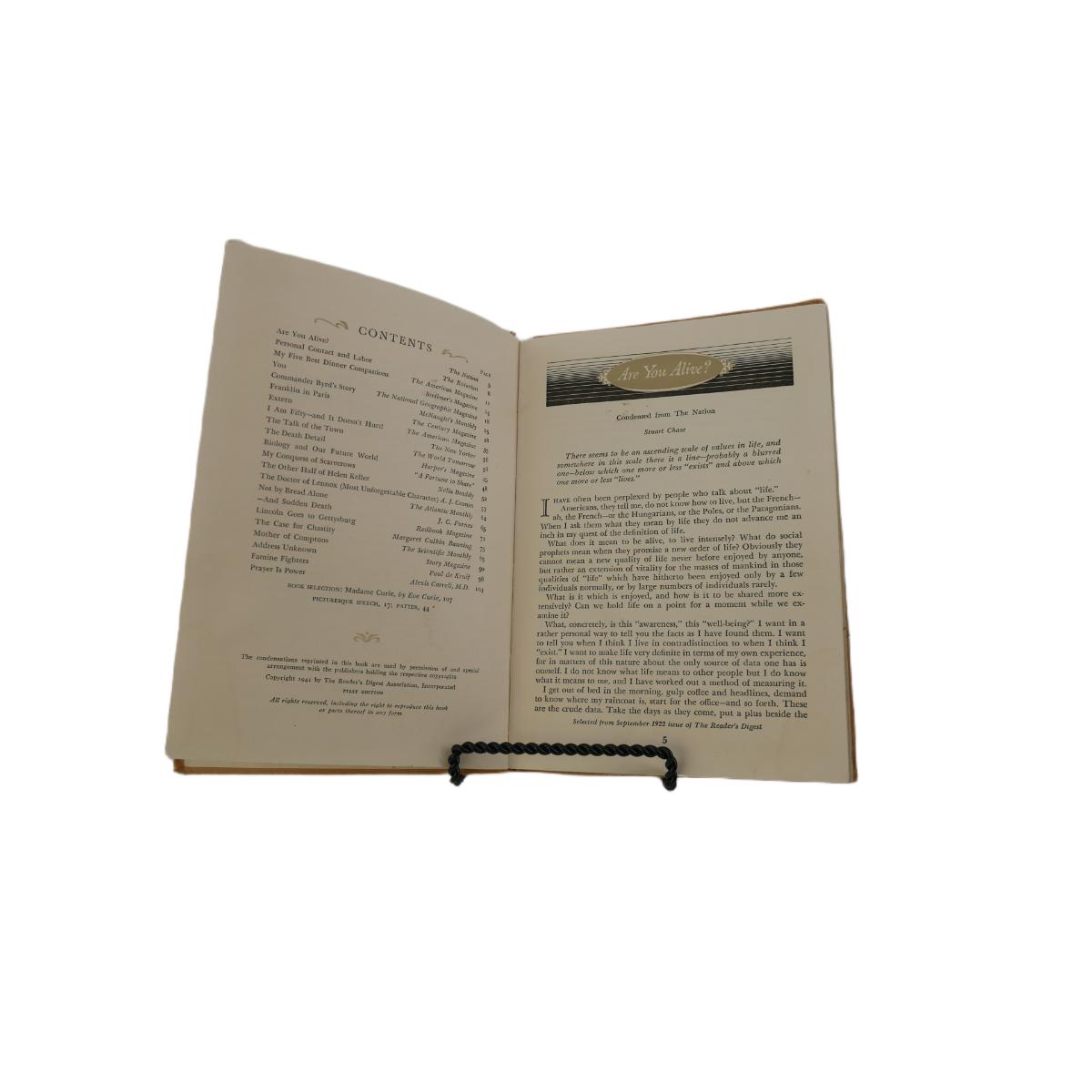The Reader's Digest 20th Anniversary Anthology copyright, 1941 First Edition. Binding has some issues, but overall good condition for its age. Measures 5.5" x 8". Hemmets Kokbok copyright, 1937. A fully Swedish cookbook. In wonderful condition! Measures 6" x 8.5". Lot weighs 2 lbs. (M4)