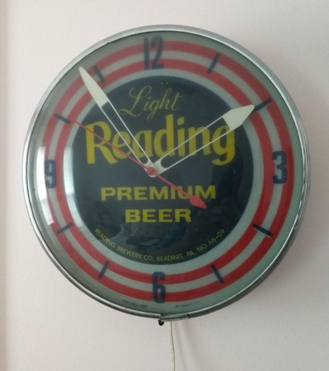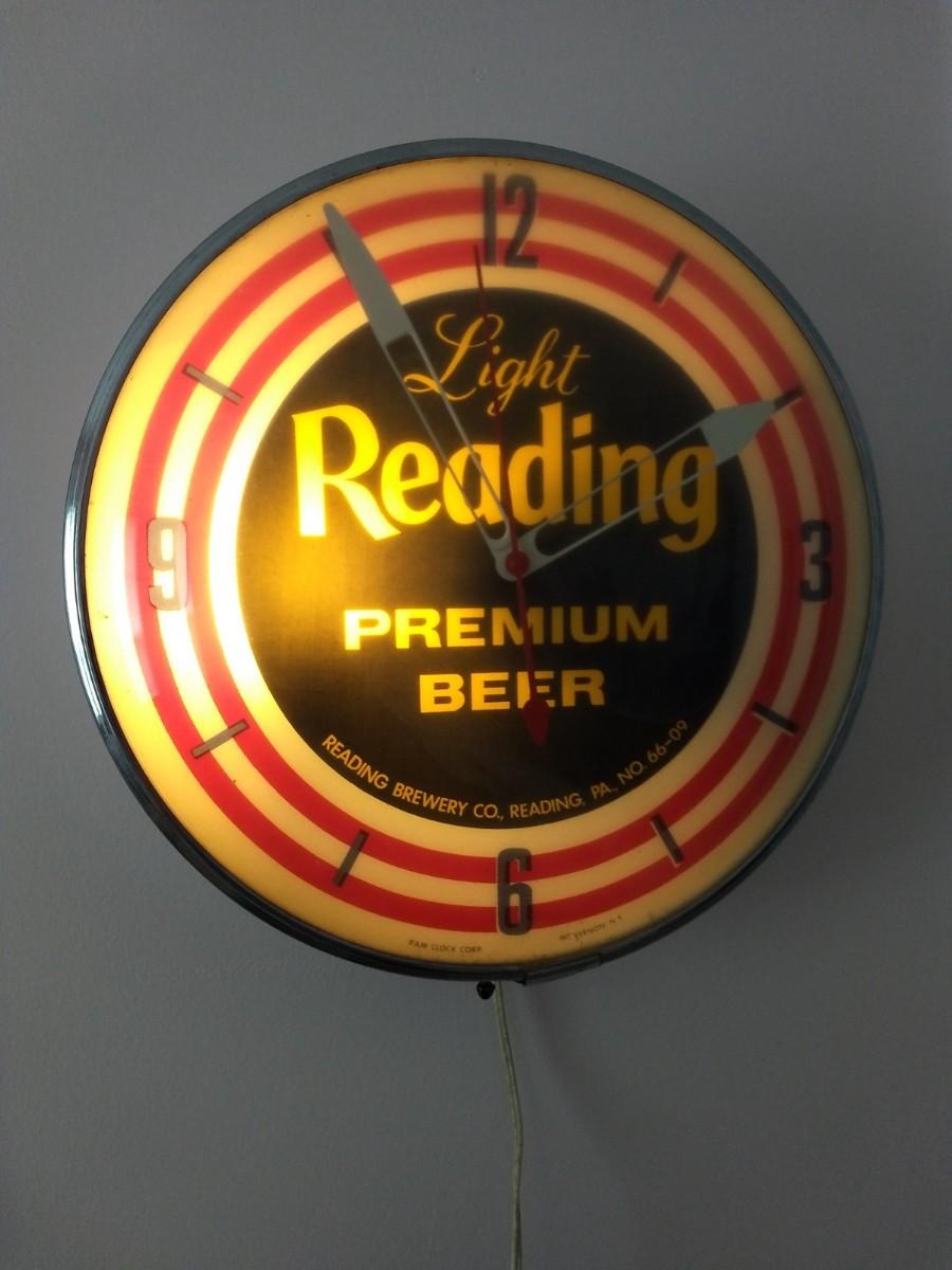Vintage Reading Light Premium Bubble Glass Lighted Advertising Wall Clock by PAM Clock Co.