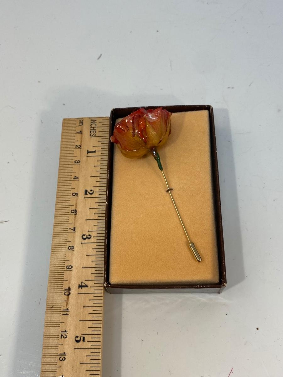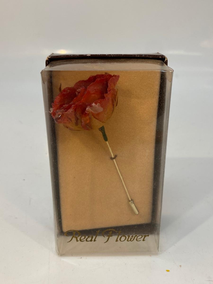 Vintage Real Flower Rose Bud Stick Pin Brooch. In original box. Flower has been clear coated to help keep preserved but is fragile.