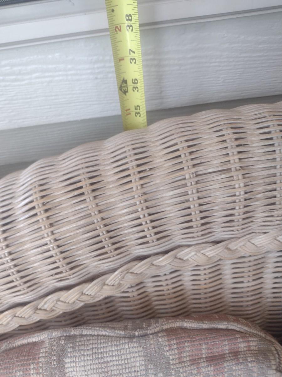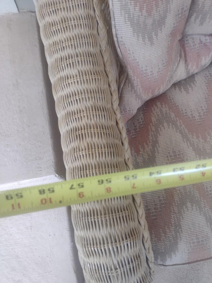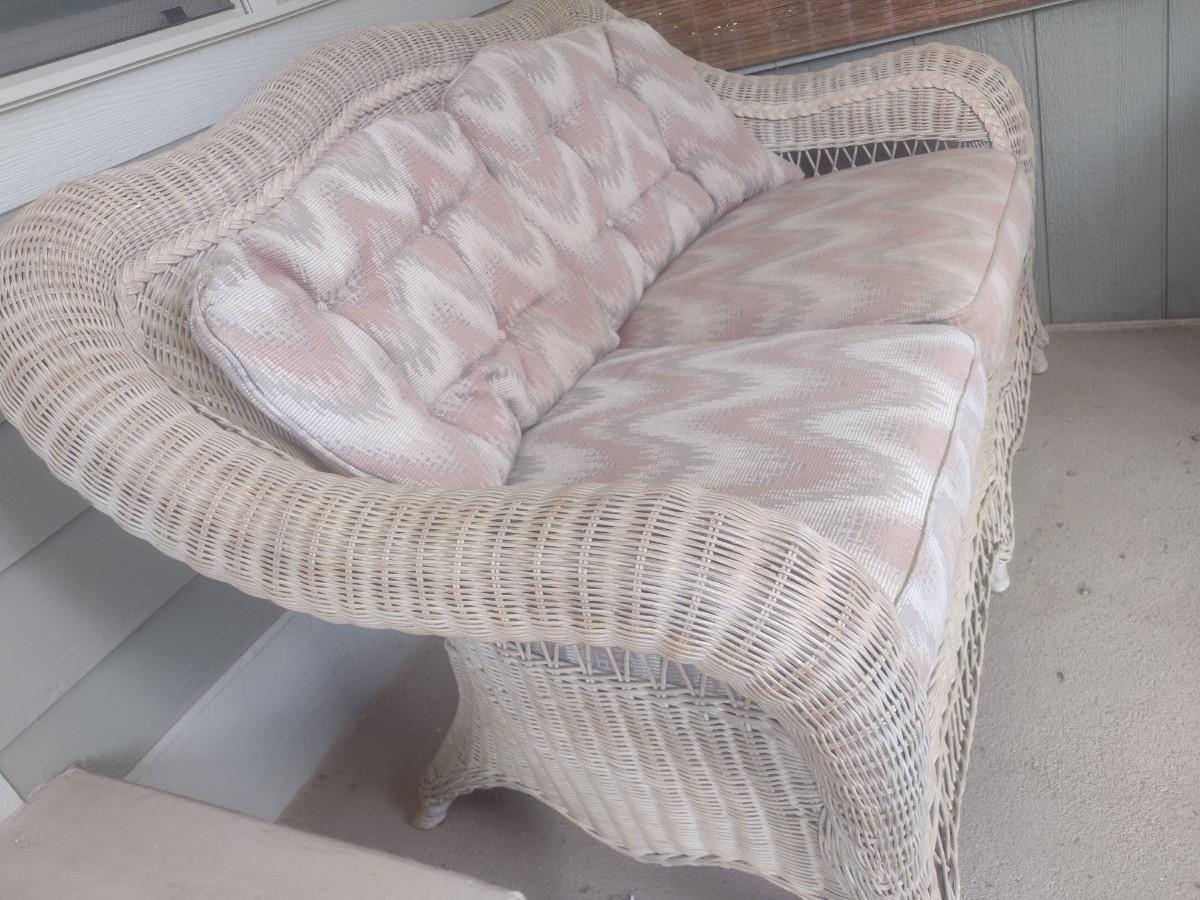 Vintage Real Wicker Loveseat with Cushions. Expect some wear and broken reeds as shown.