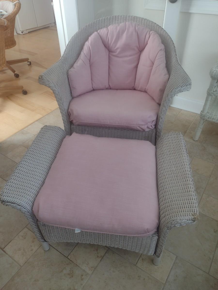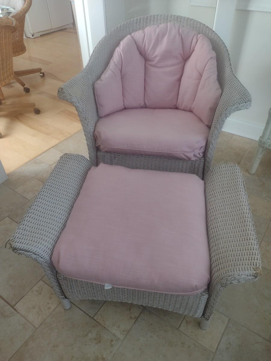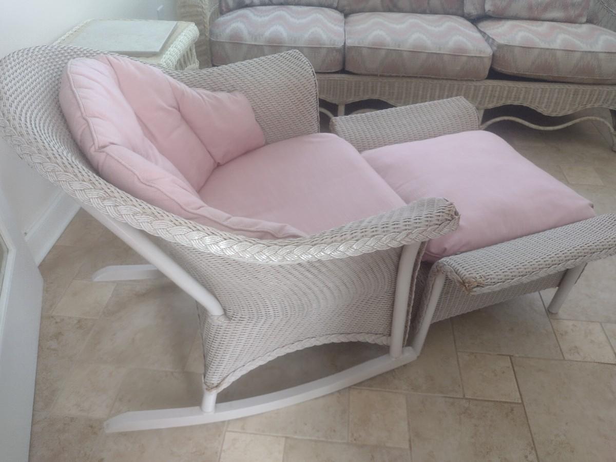 Vintage Real Wicker Rocking Chair with Matching Ottoman with Cushions