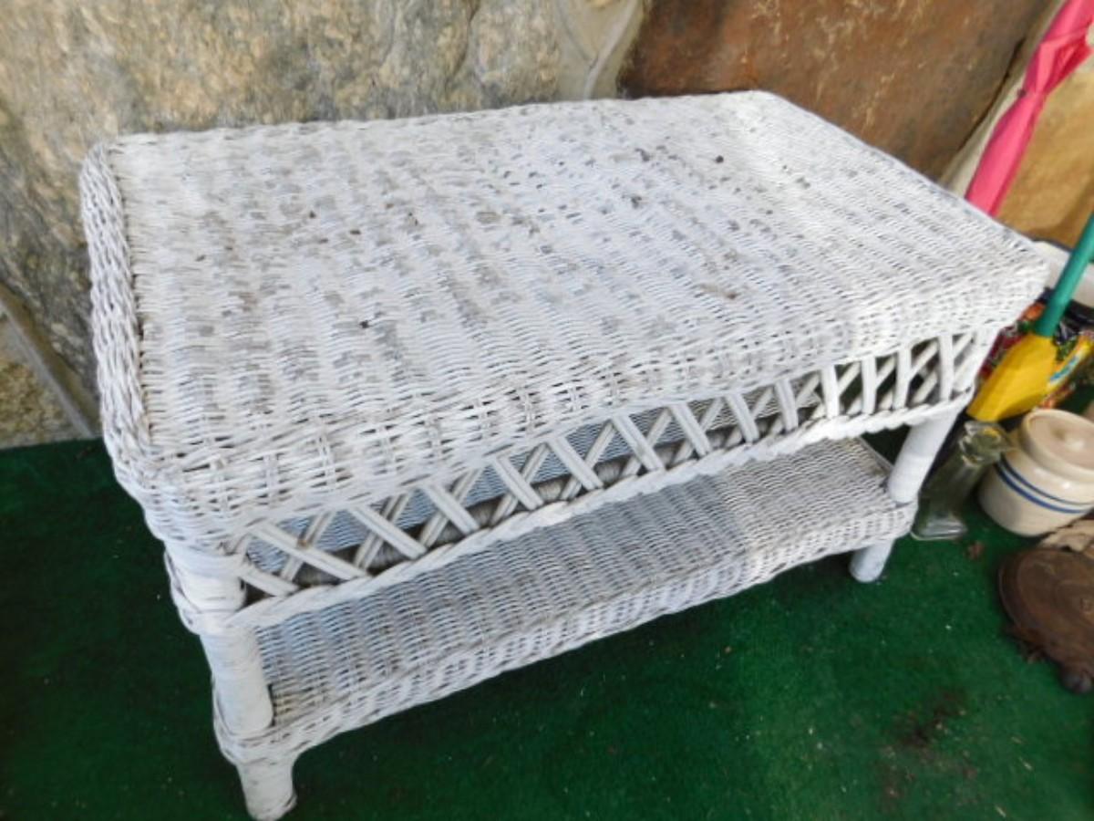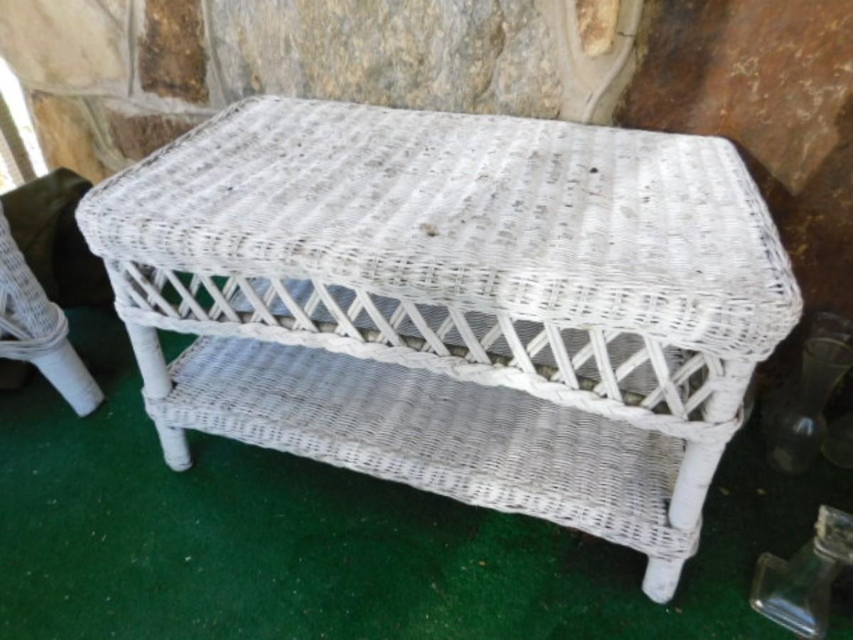 Vintage Real Wicker Side Table. Paint wear on surface as shown
