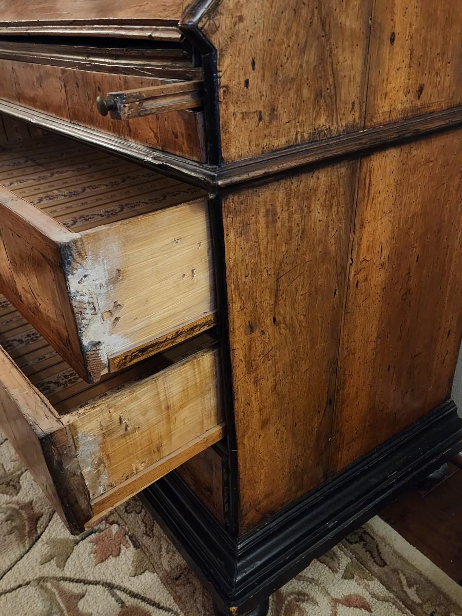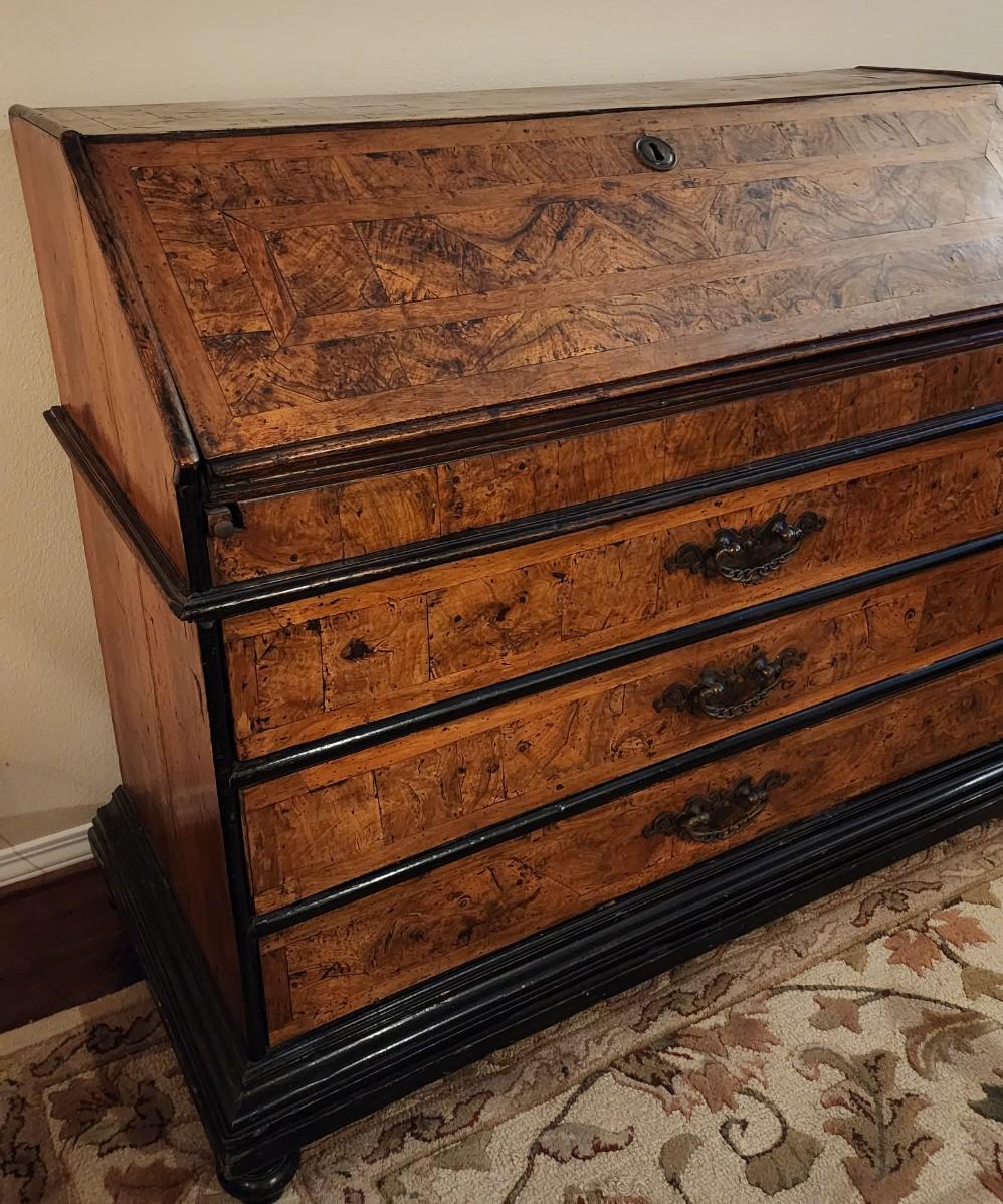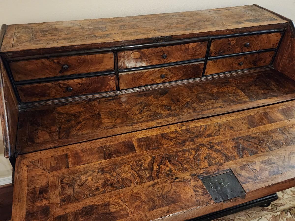 Vintage Reclaimed Wood Burl Veneer Secretary Desk