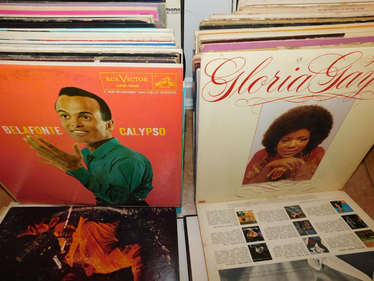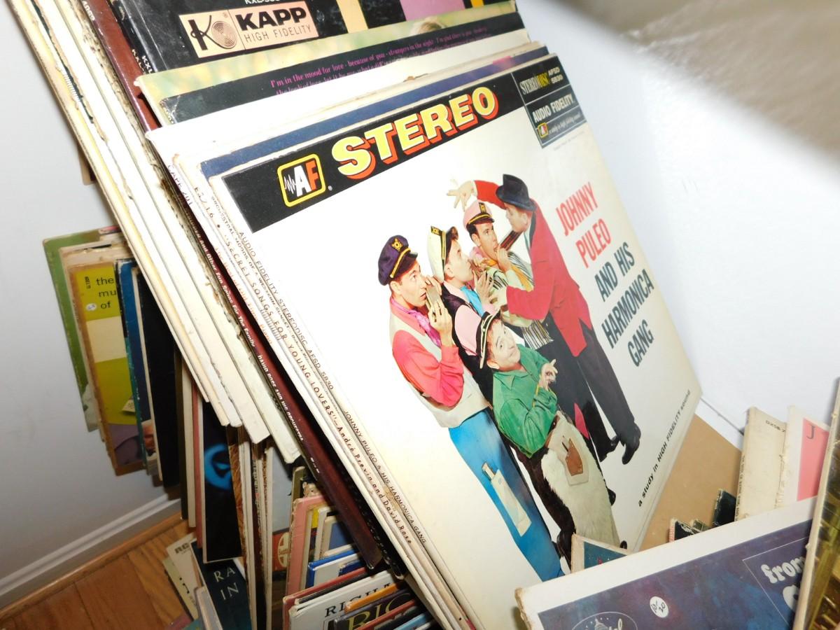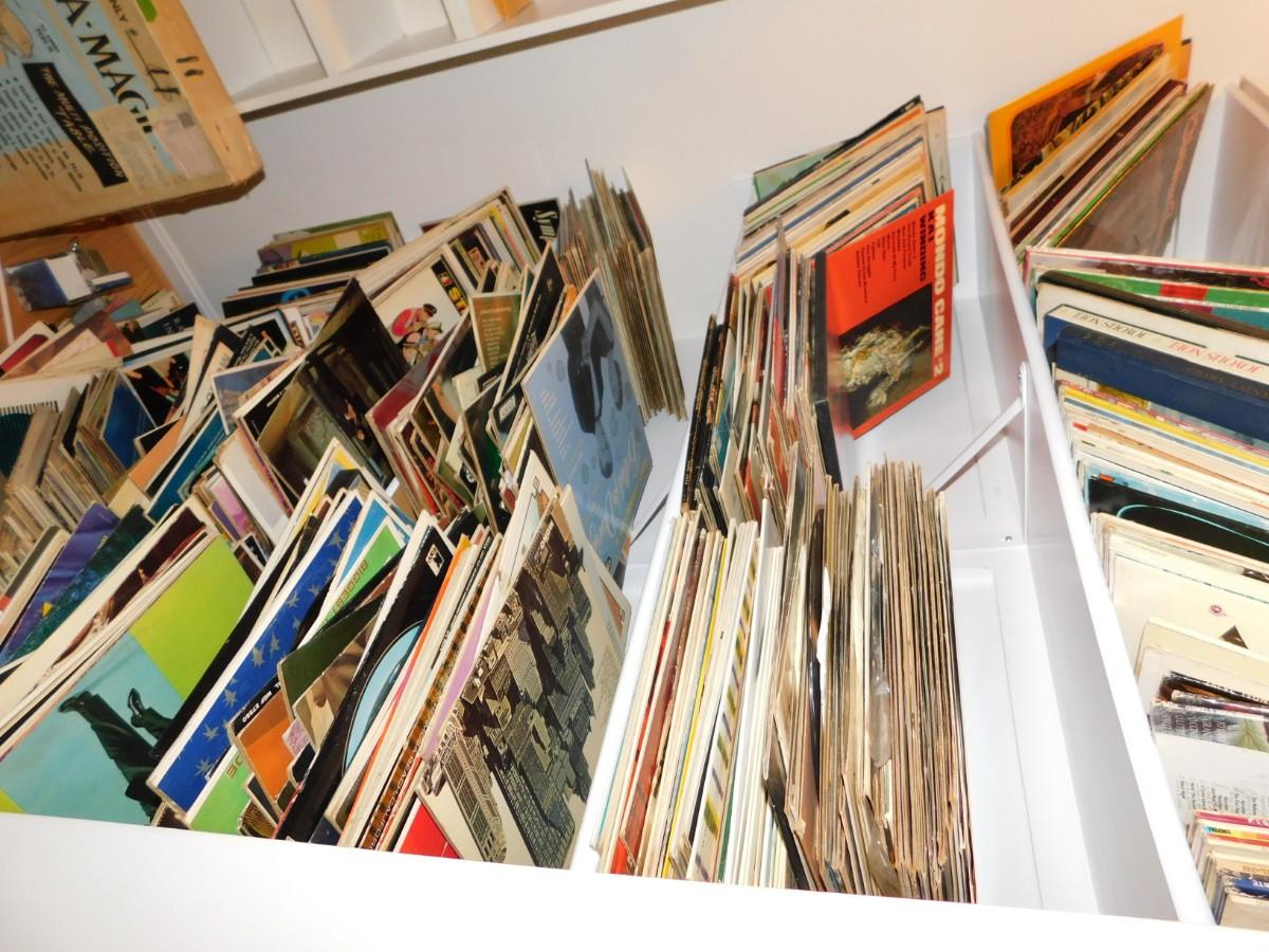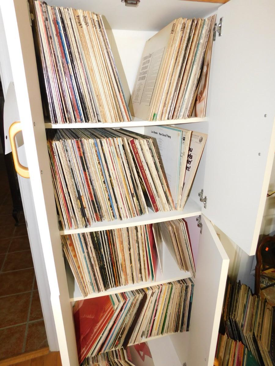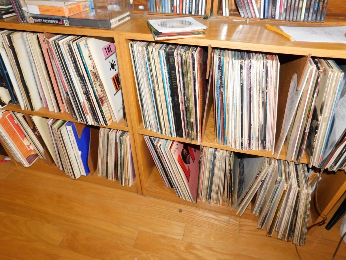 Varying degrees of vinyl and jacket wear - we obviously didnt check them all but most like just fine. (Bookshelves not included)