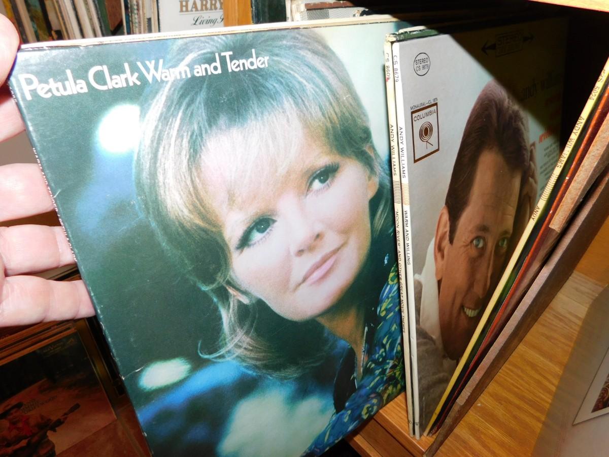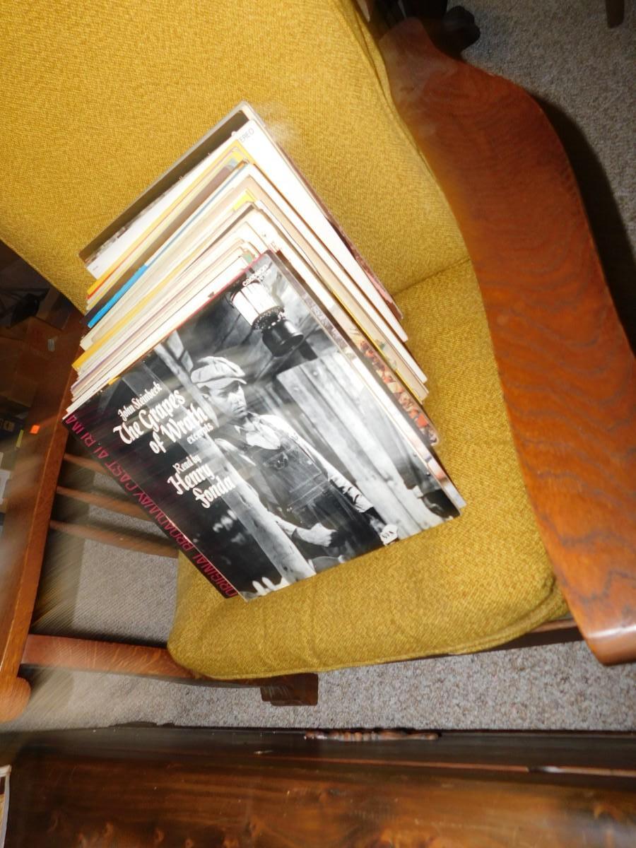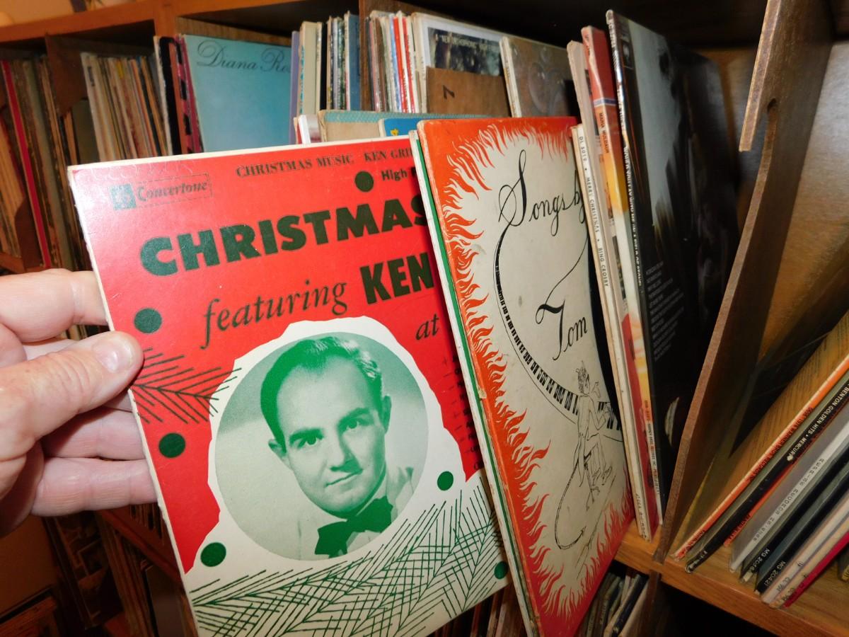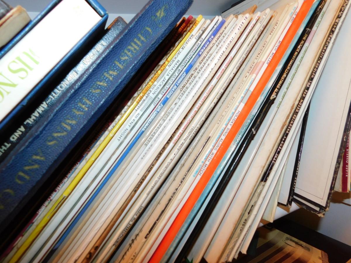 Varying degrees of vinyl and jacket wear - we obviously didnt check them all but most like just fine. (Bookshelves not included)