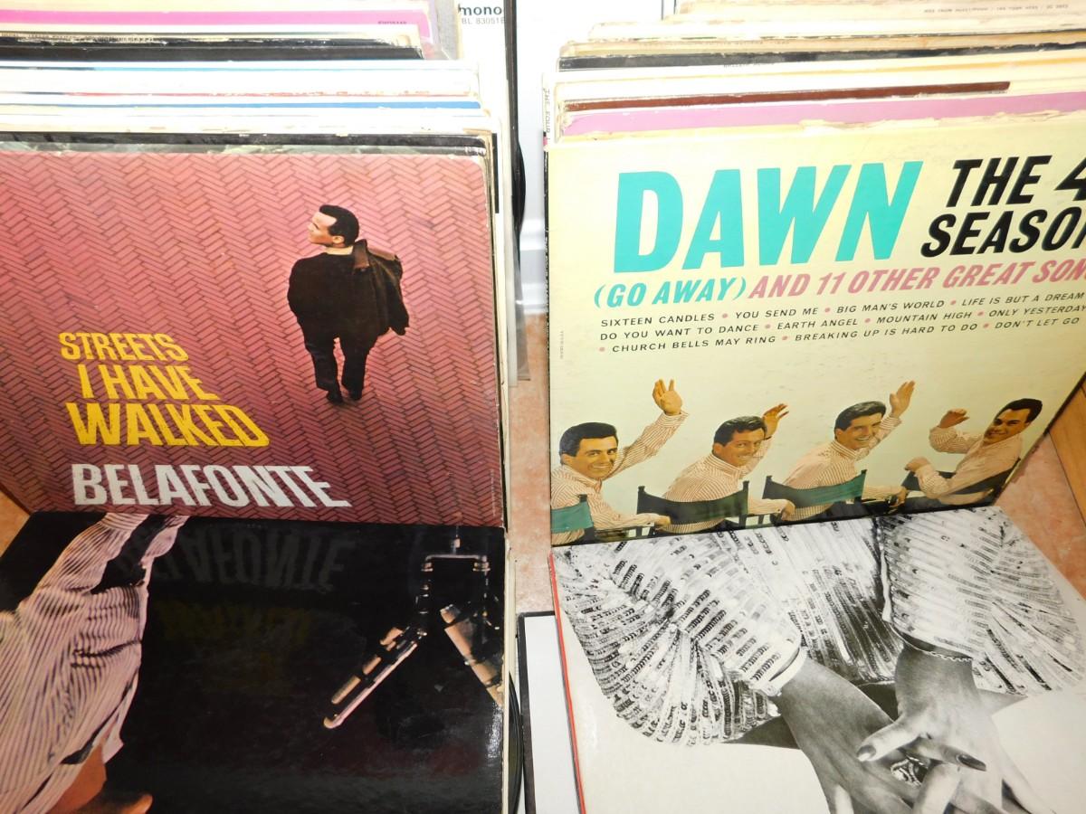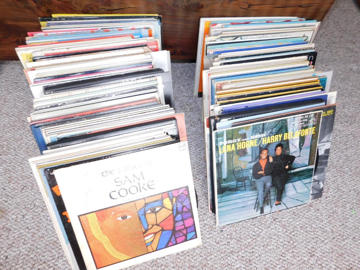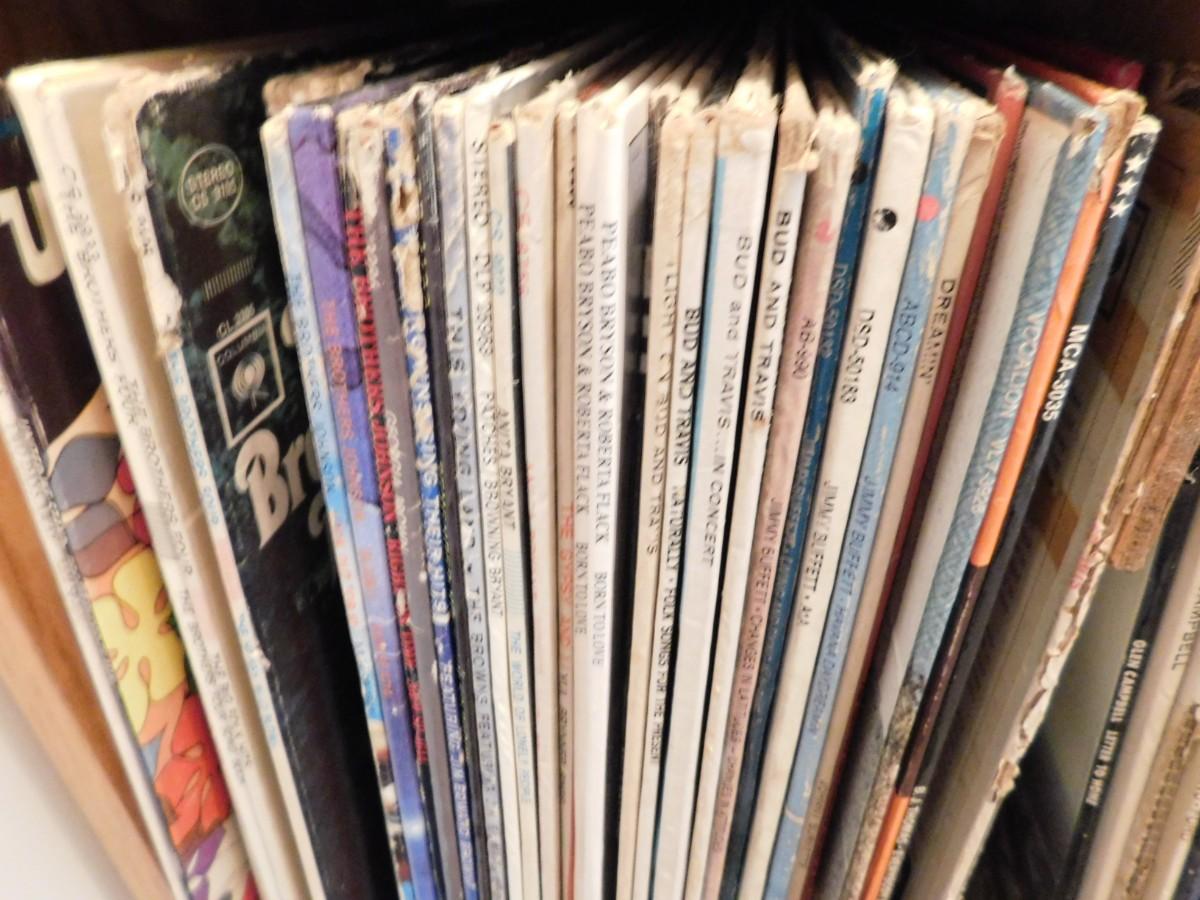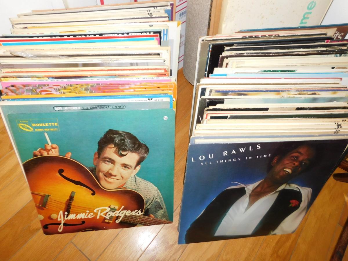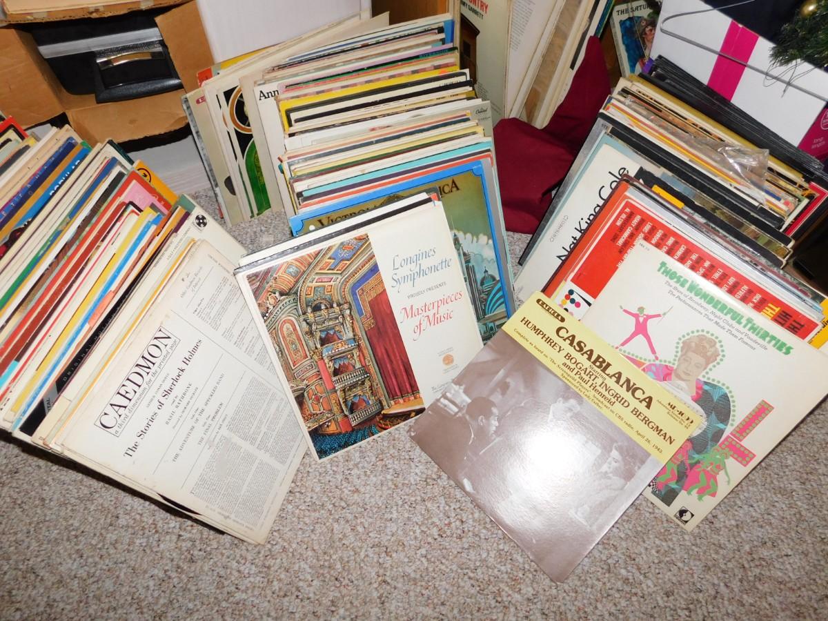 Varying degrees of vinyl and jacket wear - we obviously didnt check them all but most like just fine. (Bookshelves not included)