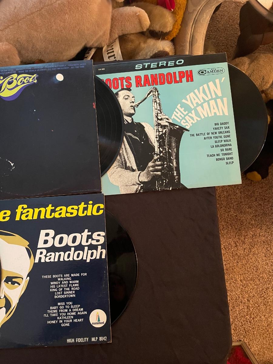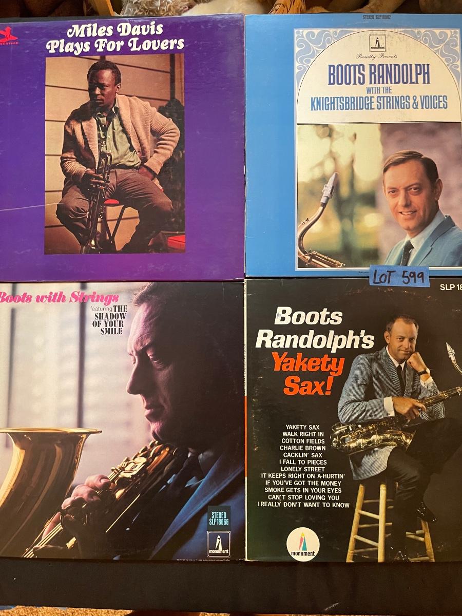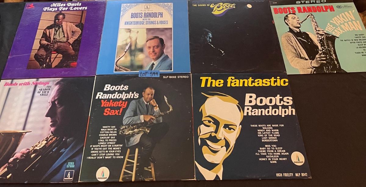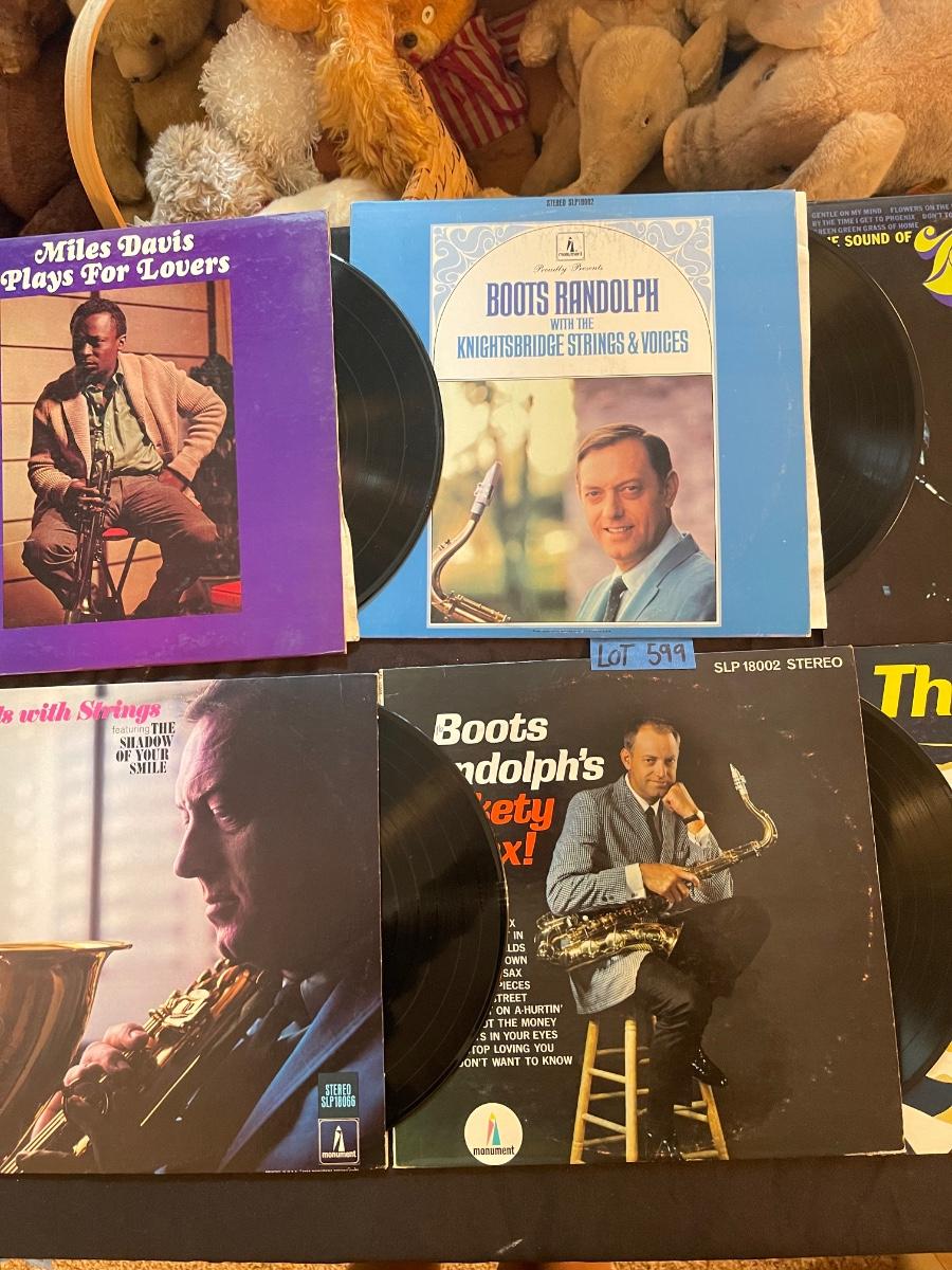 (6) Vintage Boots Randolph vinyls, (1) vintage Miles Davis record.