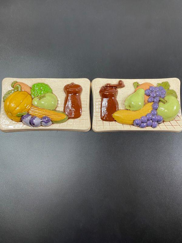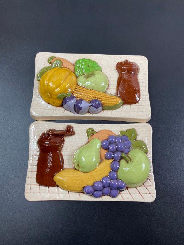VINTAGE RECTANGLE CERAMIC FRUIT WALL DECOR SET