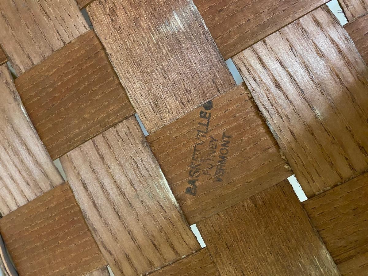 Basketville, Putney, Vermont. 24-1/2w x 12-1/2d x 4”h. Very good condition.
