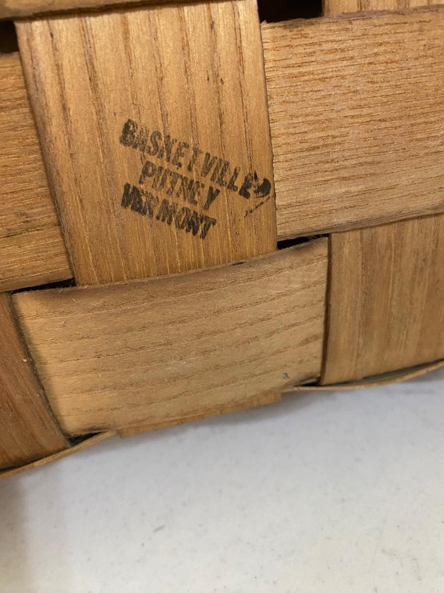 Basketville, Putney, Vermont. 21w x 10d x 13h. Very good condition.