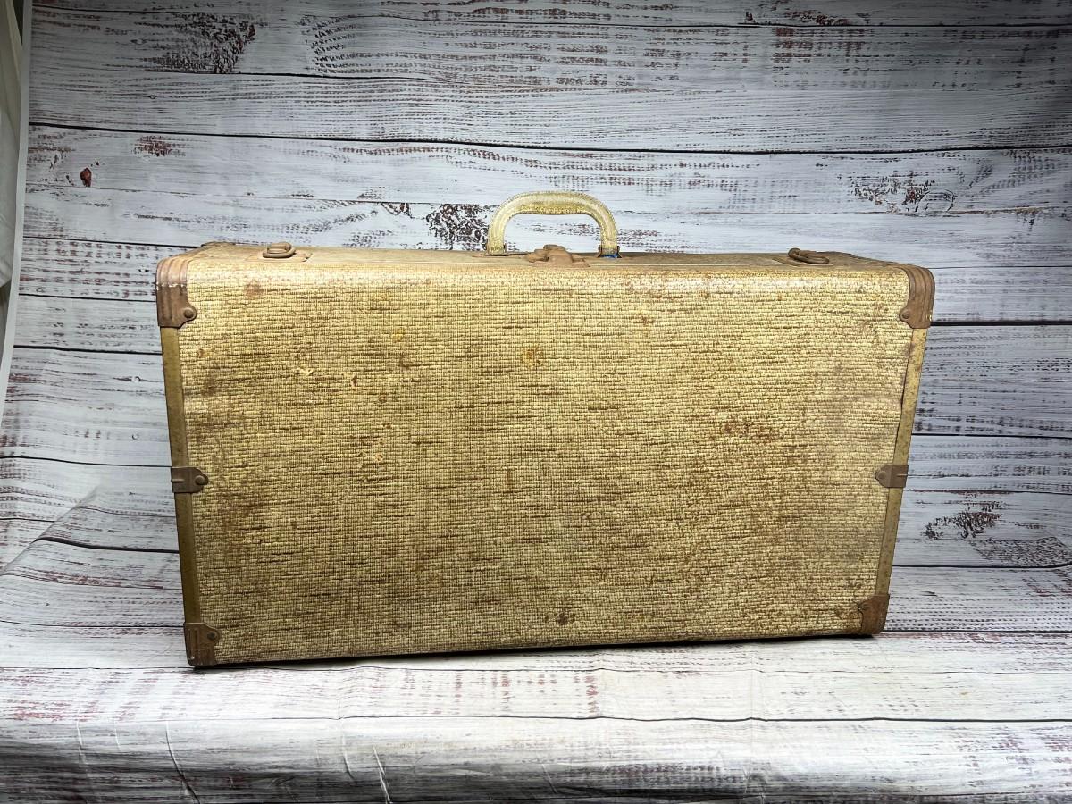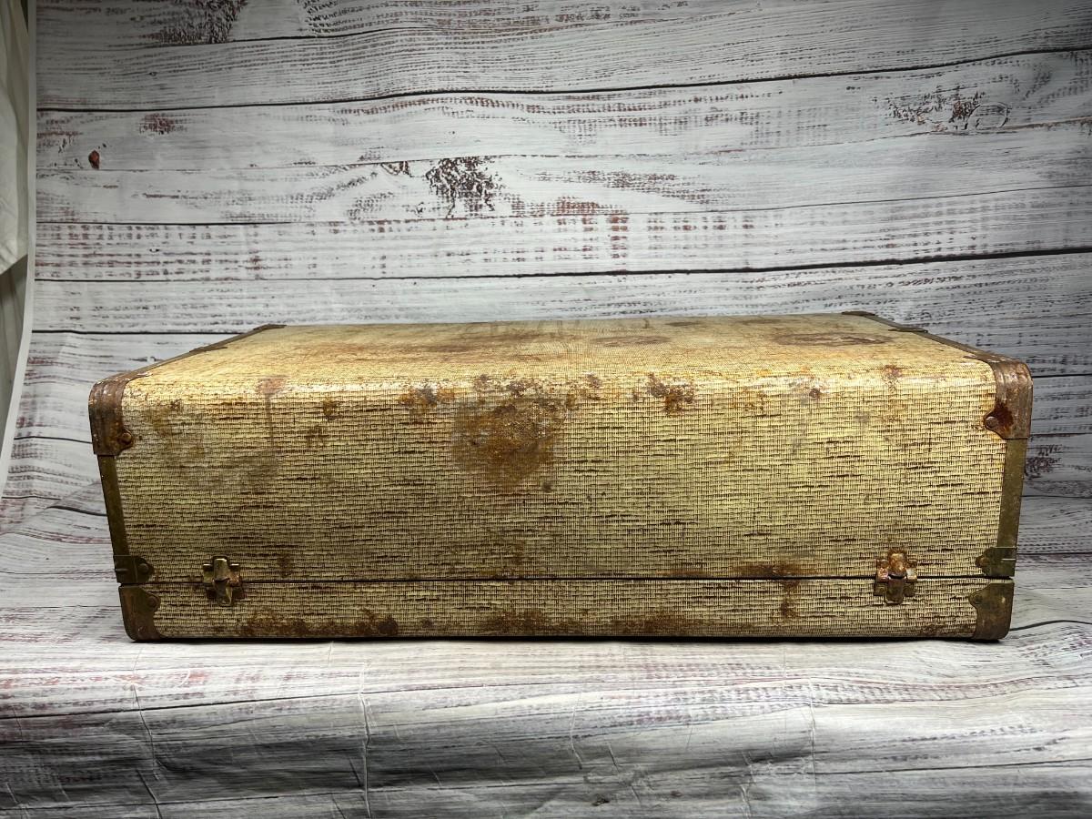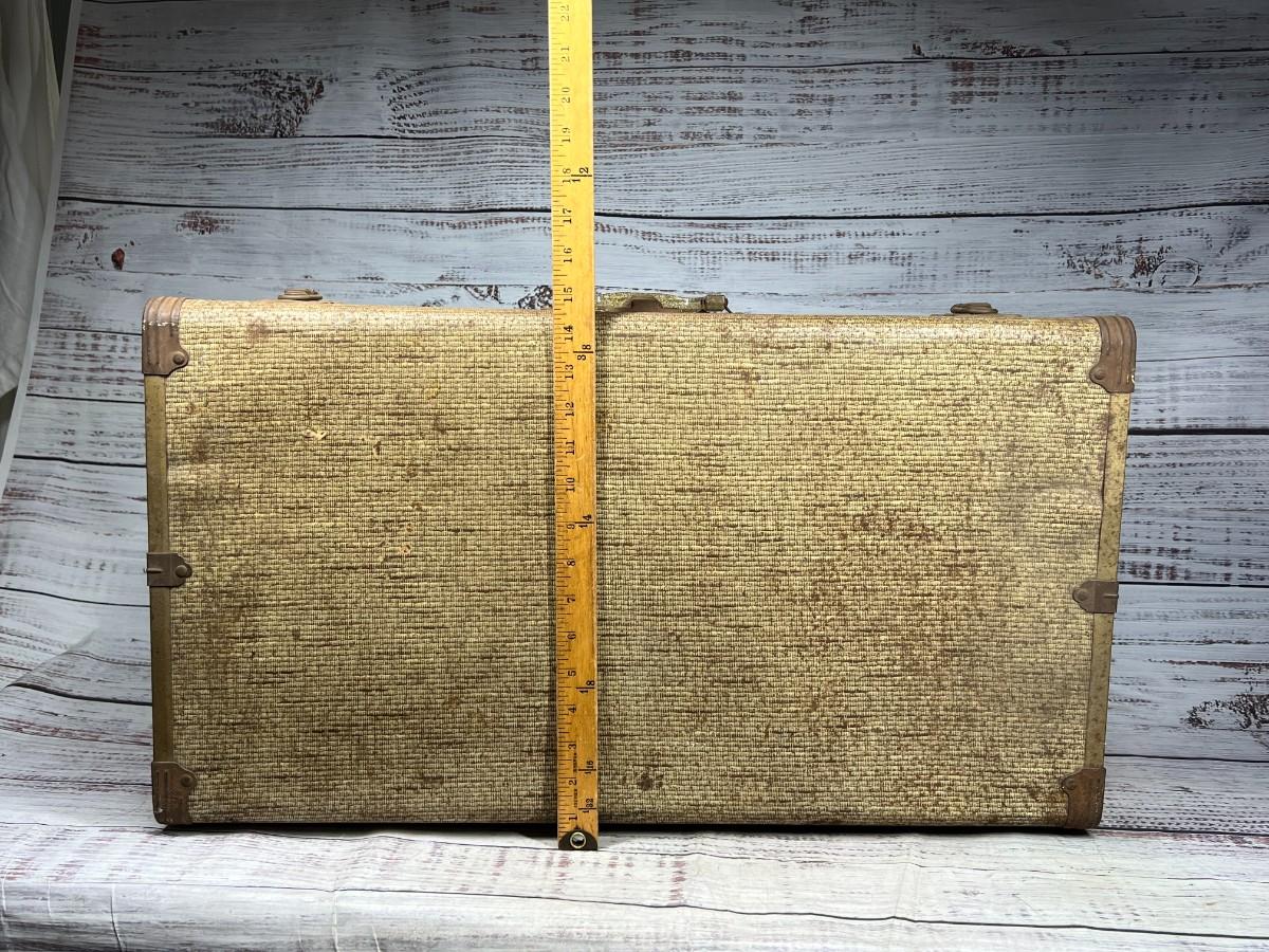 Vintage Rectangular Hardshell Travel Vacation Suitcase, there is some vintage wear to the suitcase, but there is no significant damage and is in overall fair condition. Check pictures for more details and for sizing.