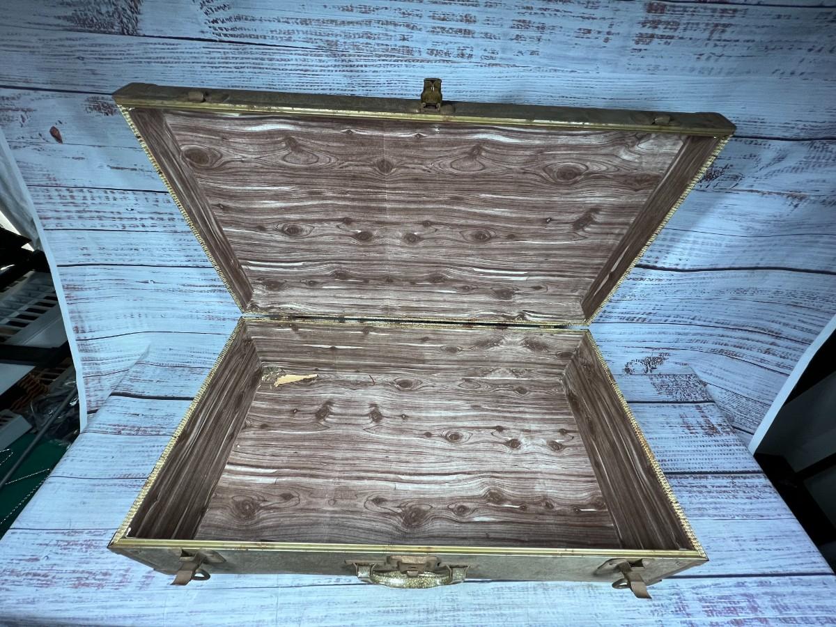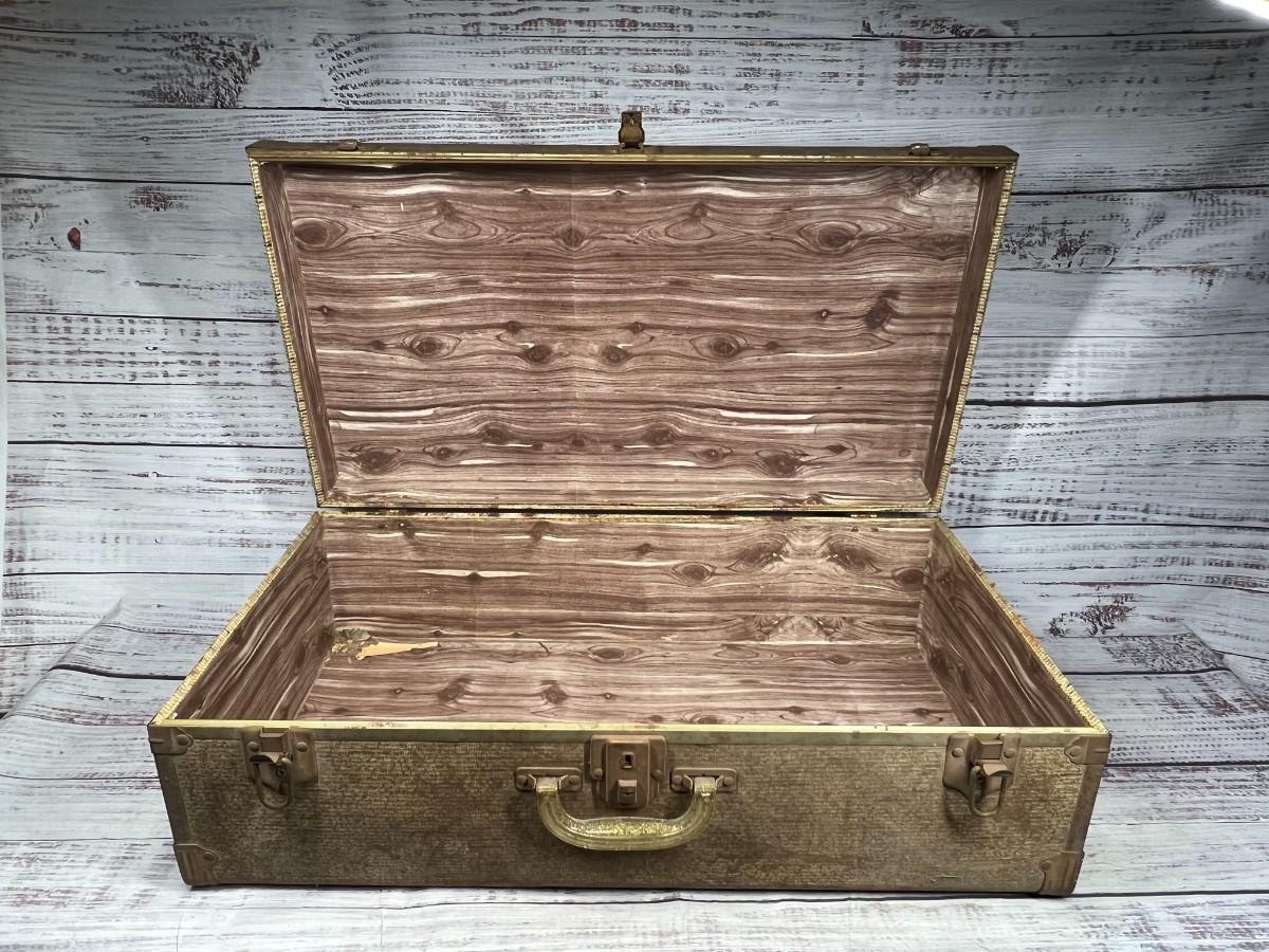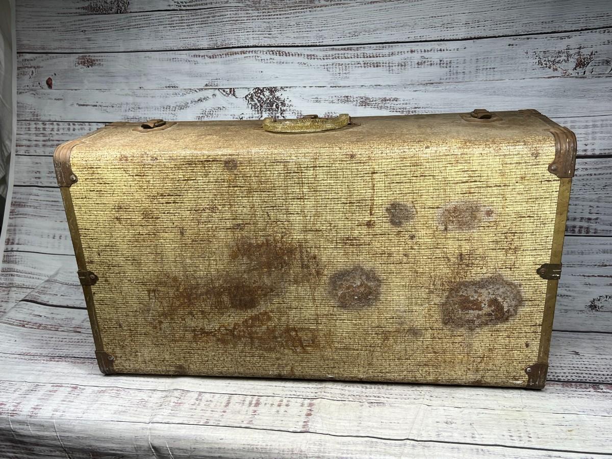 Vintage Rectangular Hardshell Travel Vacation Suitcase, there is some vintage wear to the suitcase, but there is no significant damage and is in overall fair condition. Check pictures for more details and for sizing.