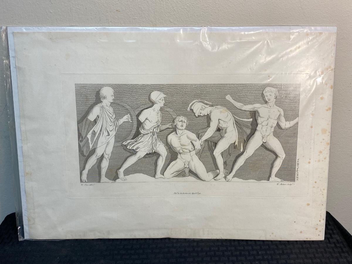 Vintage Rectangular Print of a Mythological Martyr Scene by William Skelton, there is no significant damage to the print and is in good condition. Check pictures for more details and for sizing.