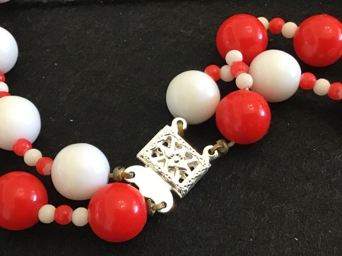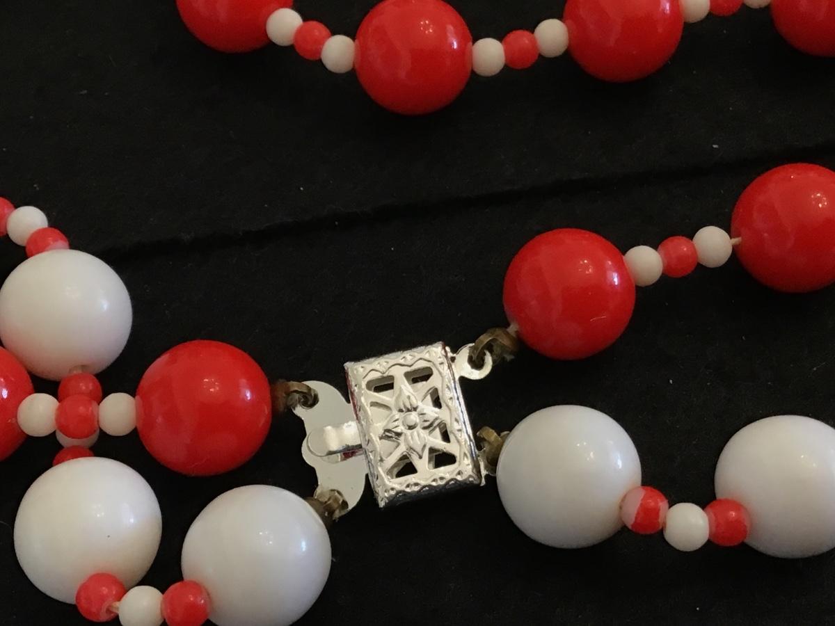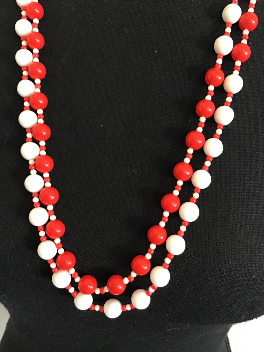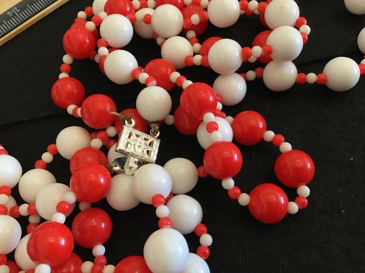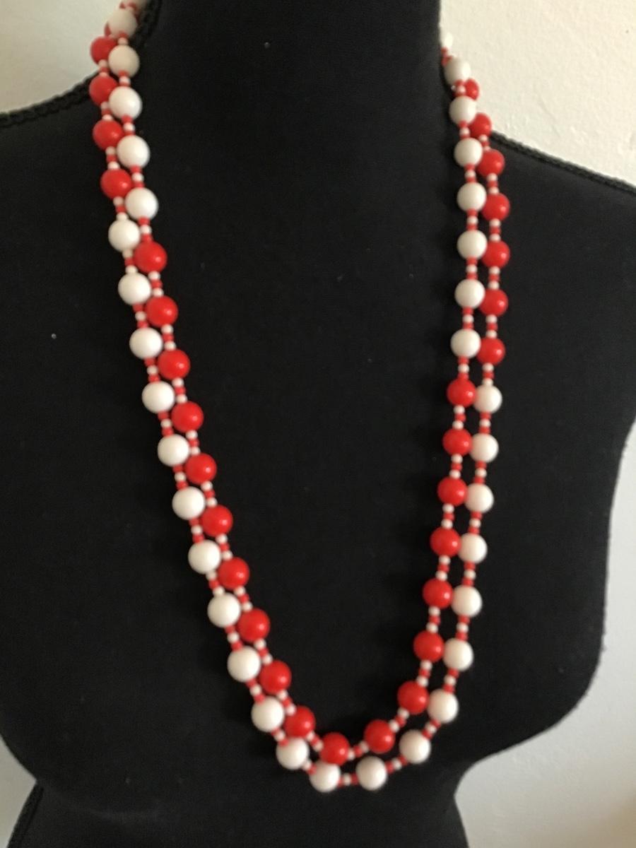 Vintage Red and White Beaded Necklace