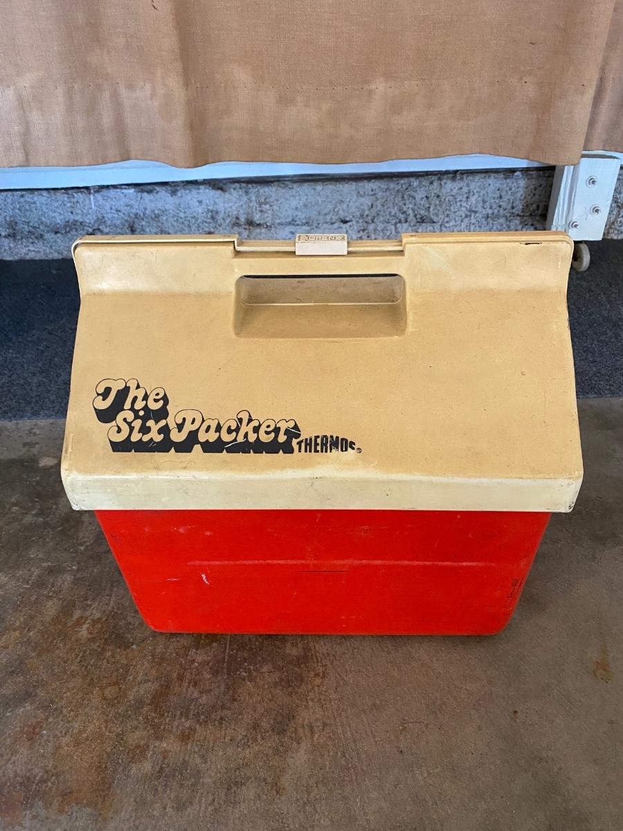 Vintage Red and White Thermos Brand Ice Chest Cooler The Six Packer