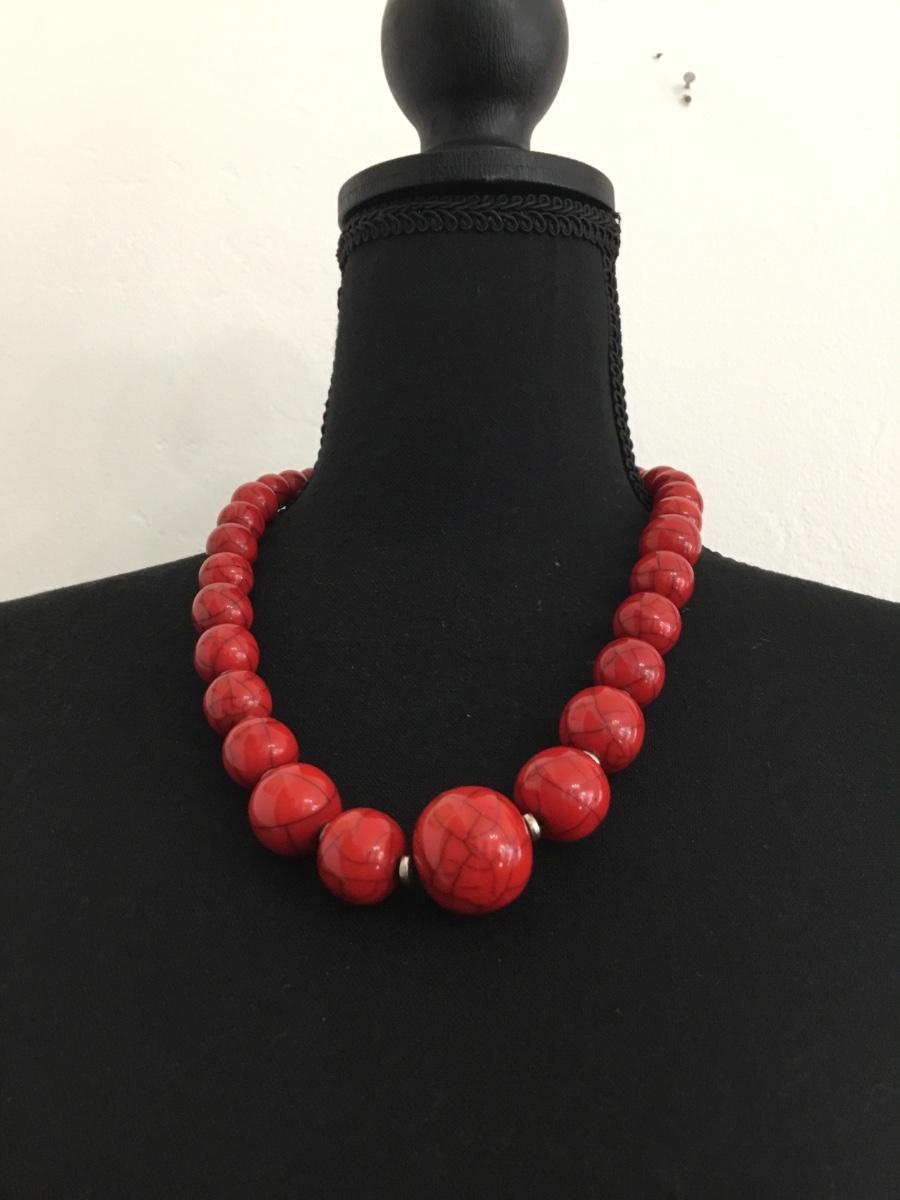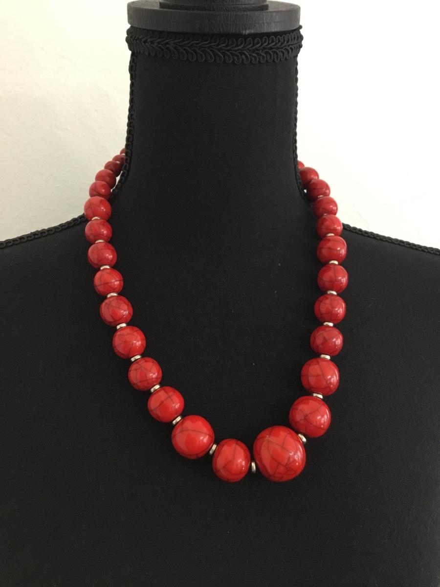 Vintage red beaded howlite type necklace