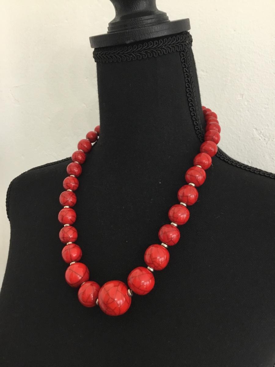 Vintage red beaded howlite type necklace