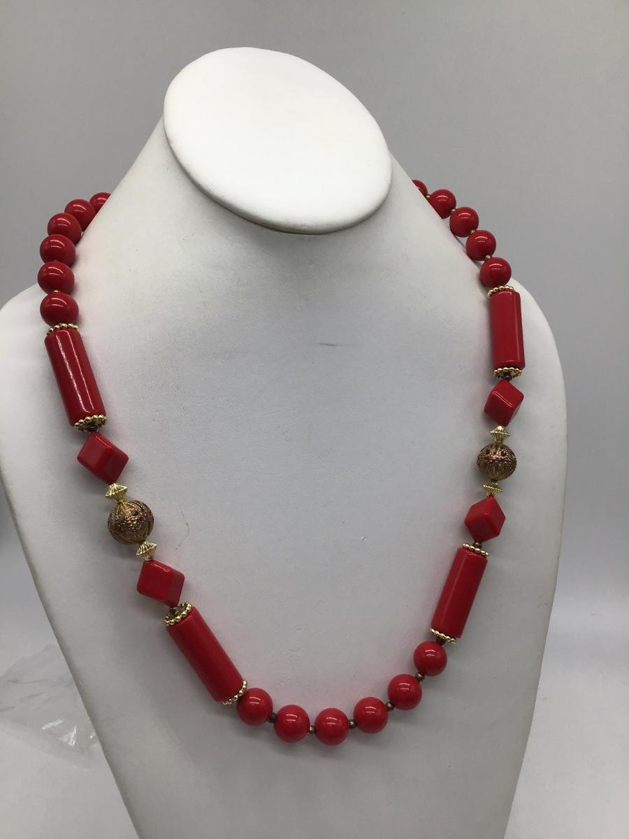Vintage Red Beaded Necklace