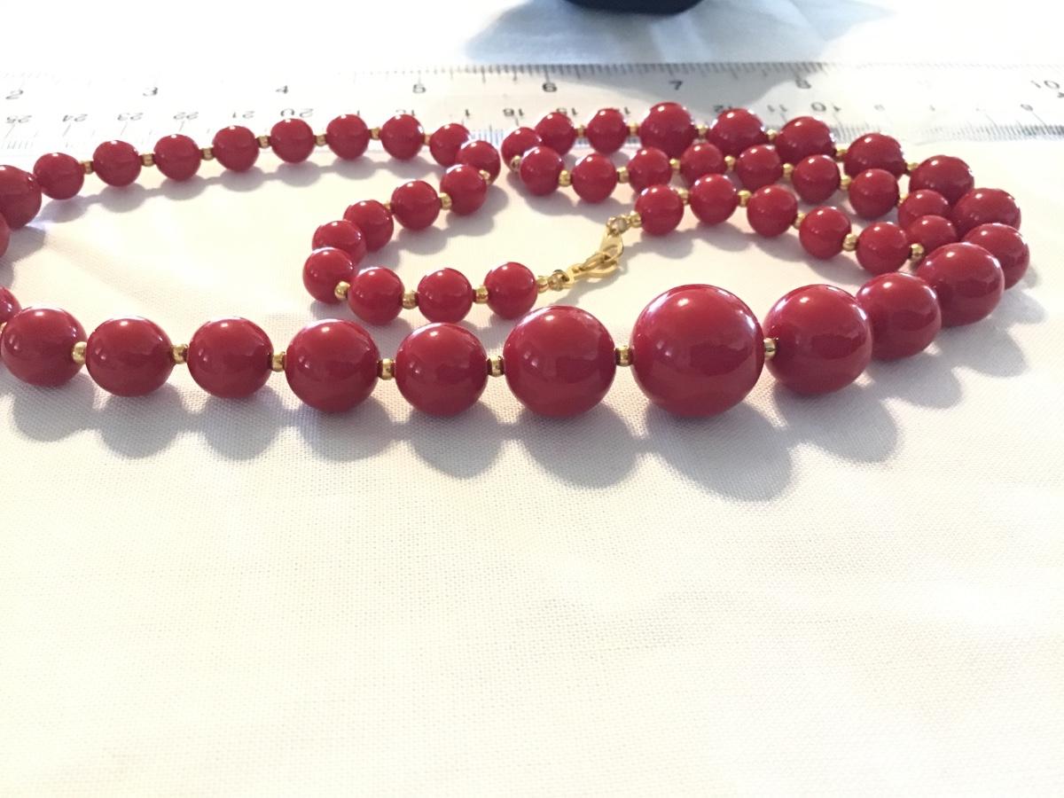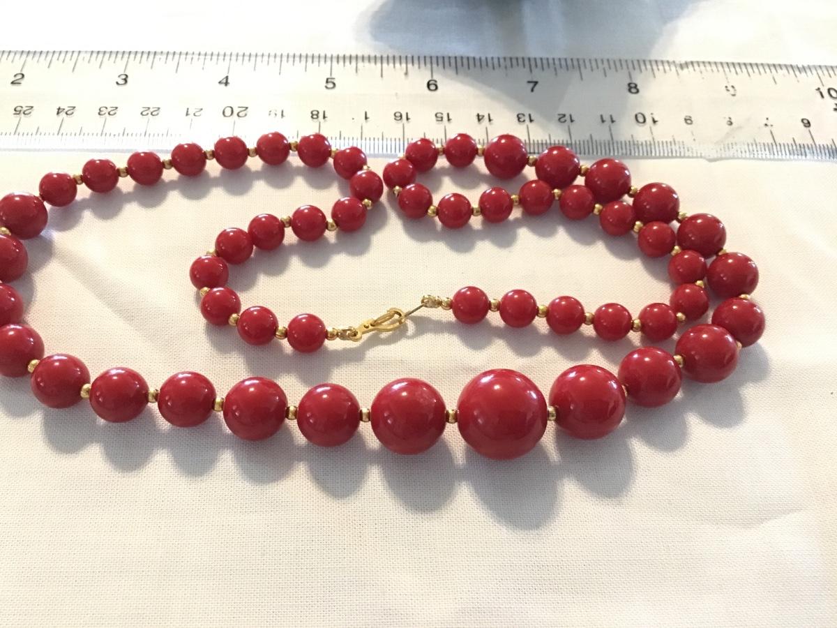 Vintage Red Beaded Necklace Gold Tone Separater Pat Pending