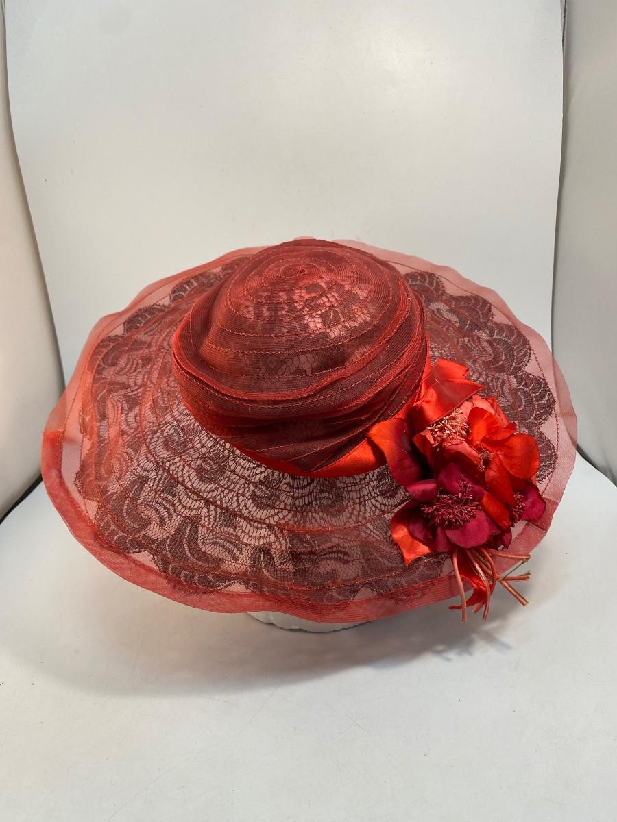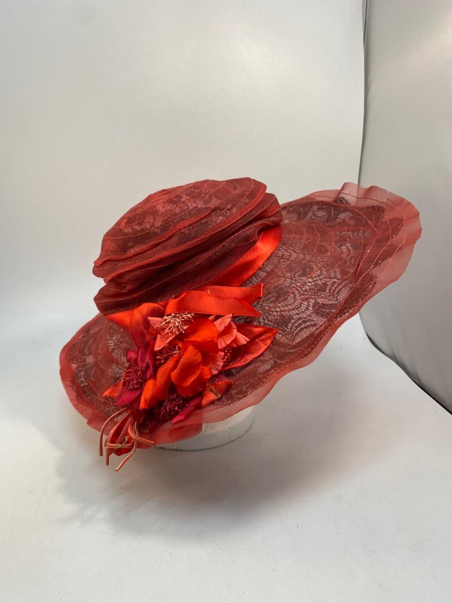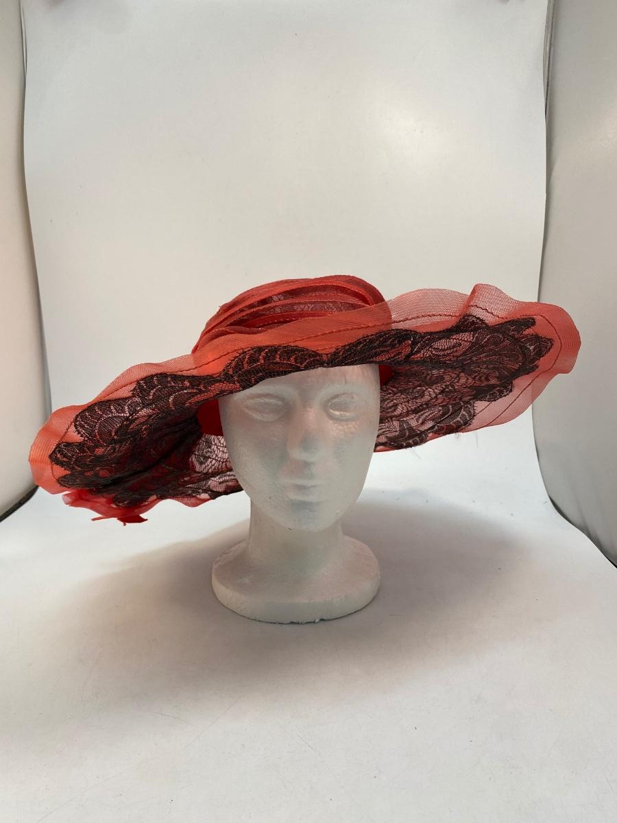 Vintage Red & Black Lace Wide Brim Sun Hat Rutherford Santa Ana