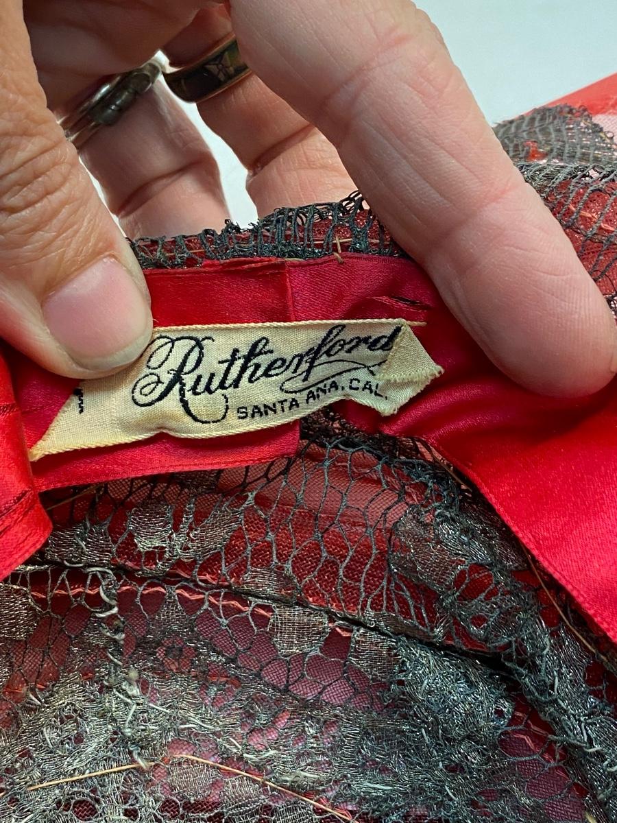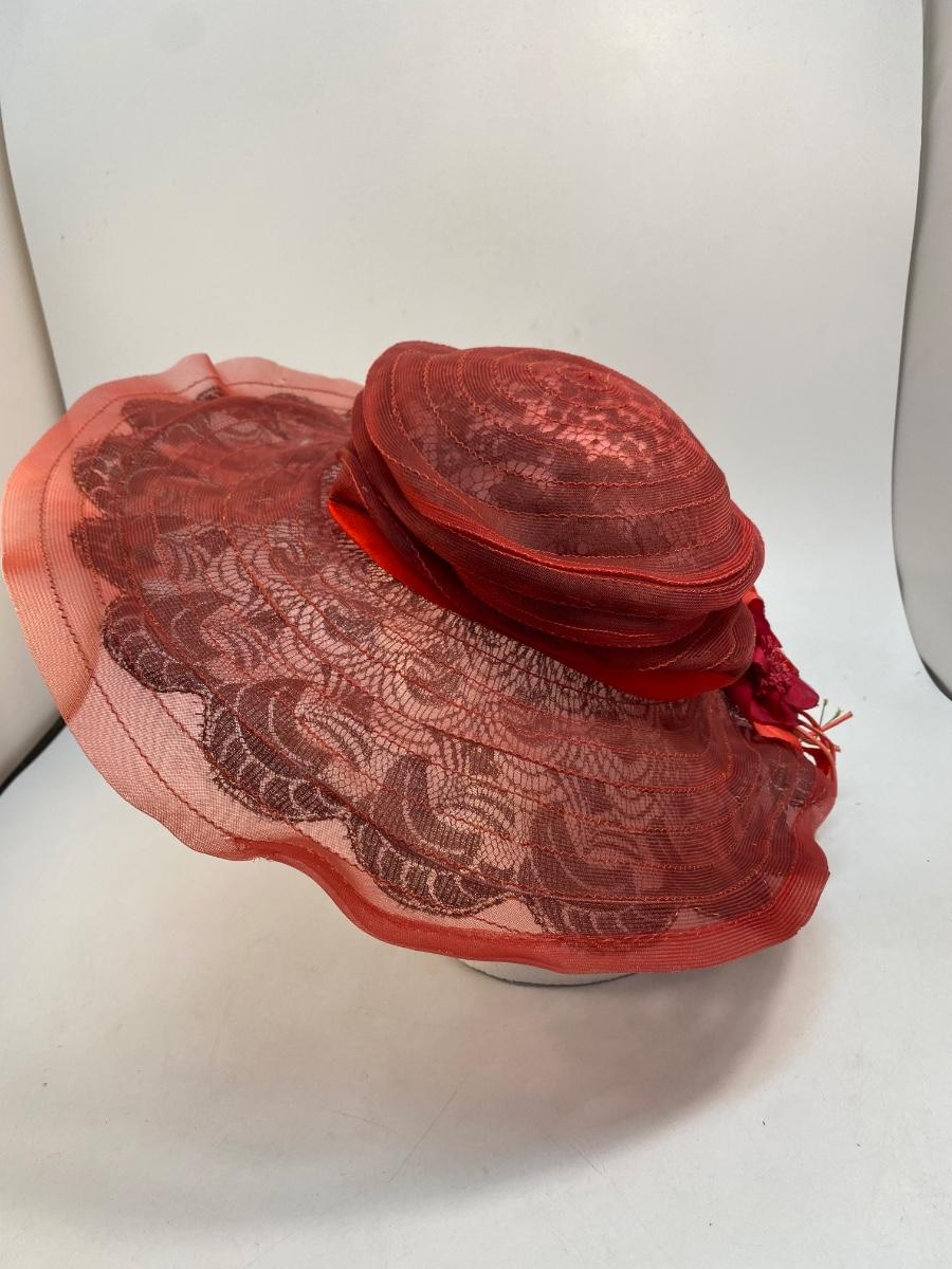 Vintage Red & Black Lace Wide Brim Sun Hat Rutherford Santa Ana. In good vintage condition. A little dusty from storage.