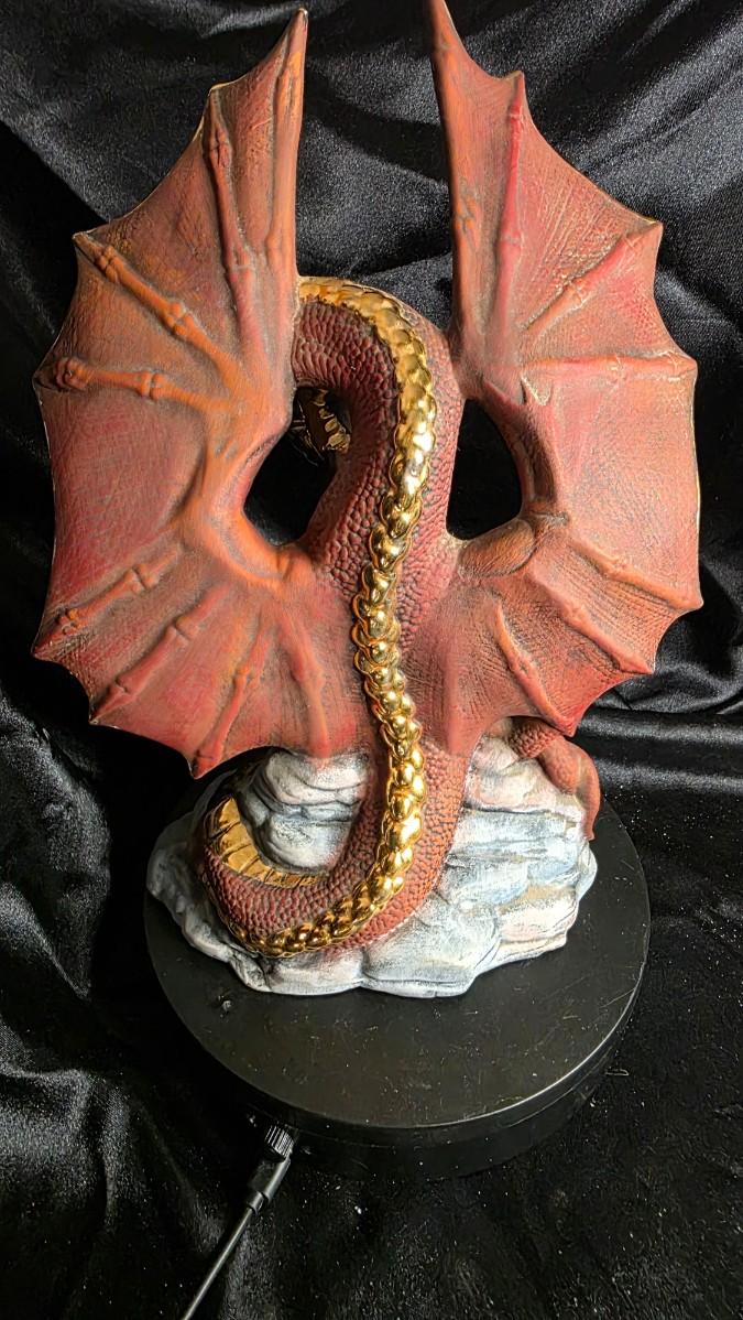 Envision it crowning a shelf in a study filled with tomes of lore, or guarding a hearth where stories unfold, its form evoking the thrill of epic tales and the warmth of mythical fires. Sourced from an estate's enigmatic collection, its surface remains vivid and unmarred, a testament to durable craftsmanship that blends fantasy with tangible artistry, ready to ignite imagination in contemporary sanctuaries. Not merely a figurine, it's a sentinel of dreams—the roar of distant battles, the glitter of hoarded gold, the quiet strength of legends reborn.