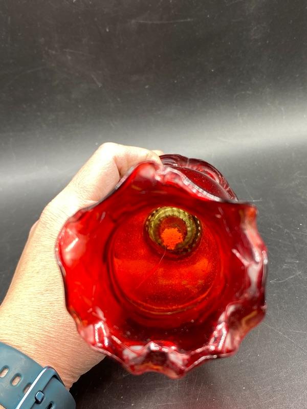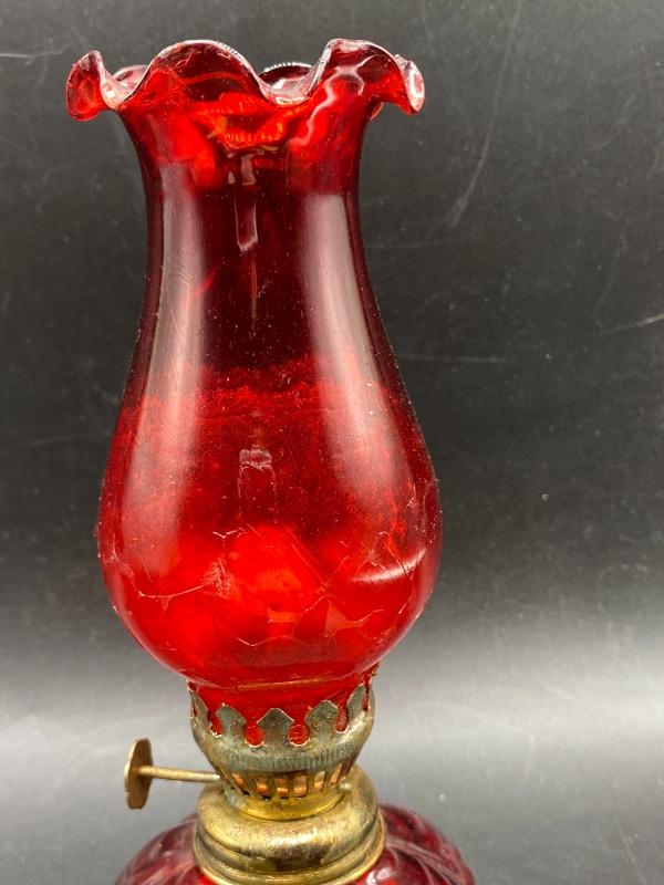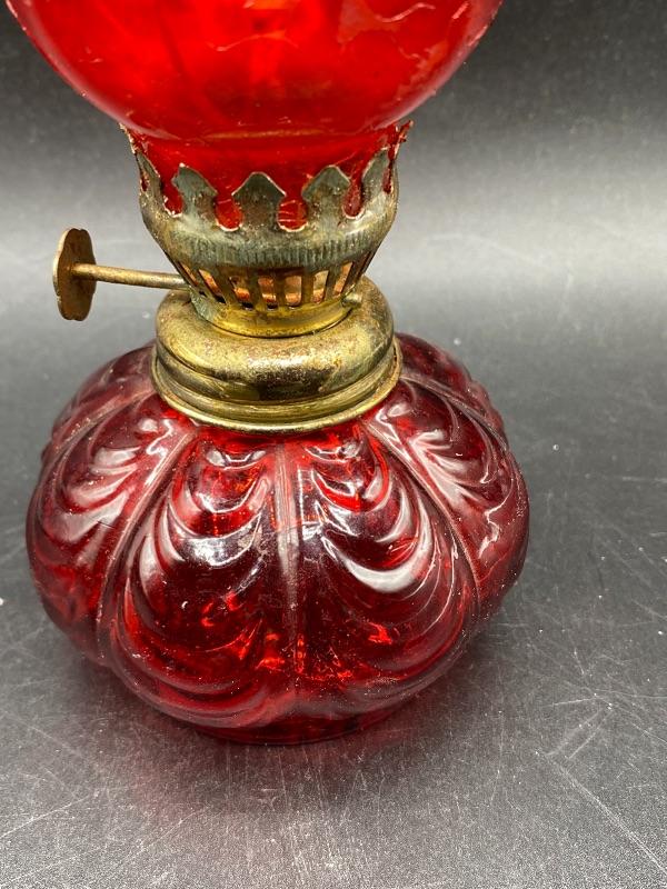 Vintage Red Glass Oil Lamp YD#011-1120-00060