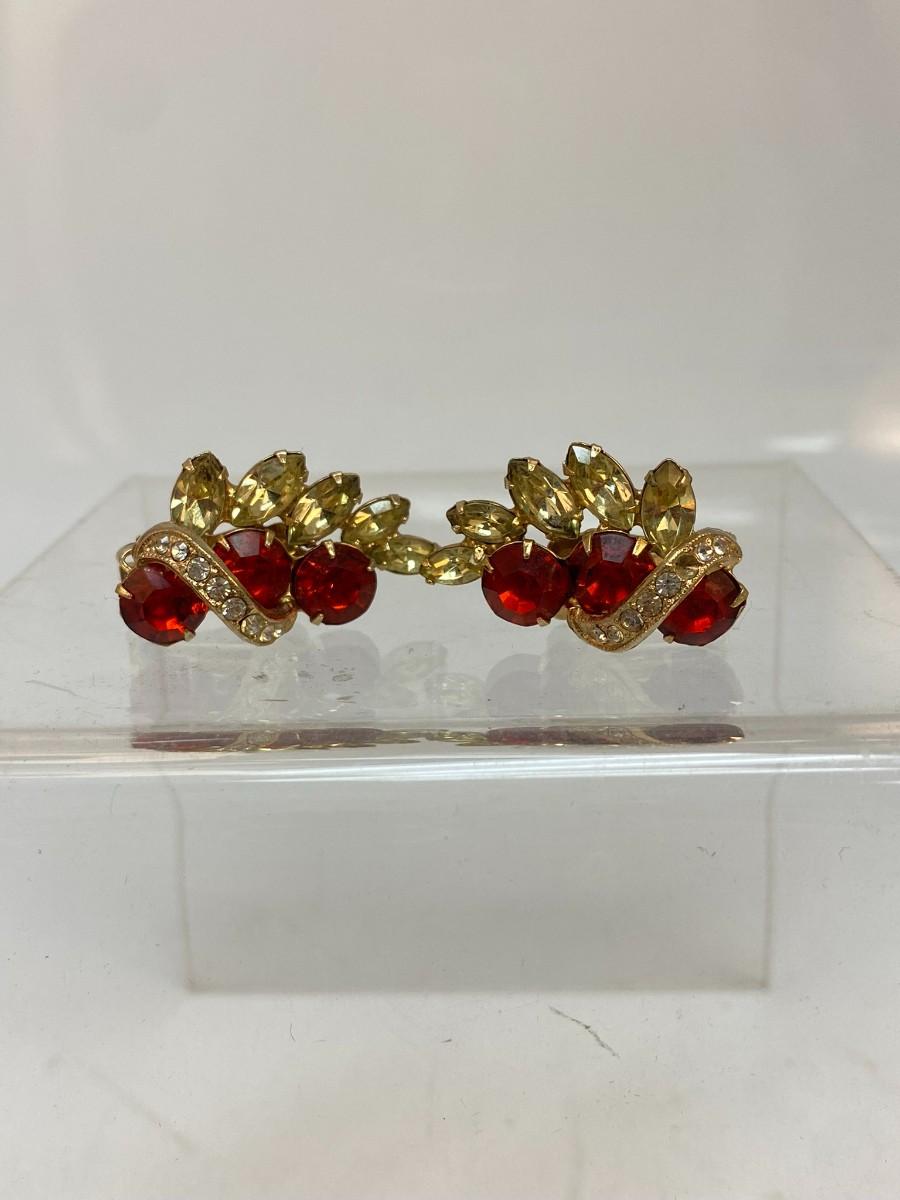 Vintage Red & Gold Eisenberg Rhinestone Clip Style Earrings