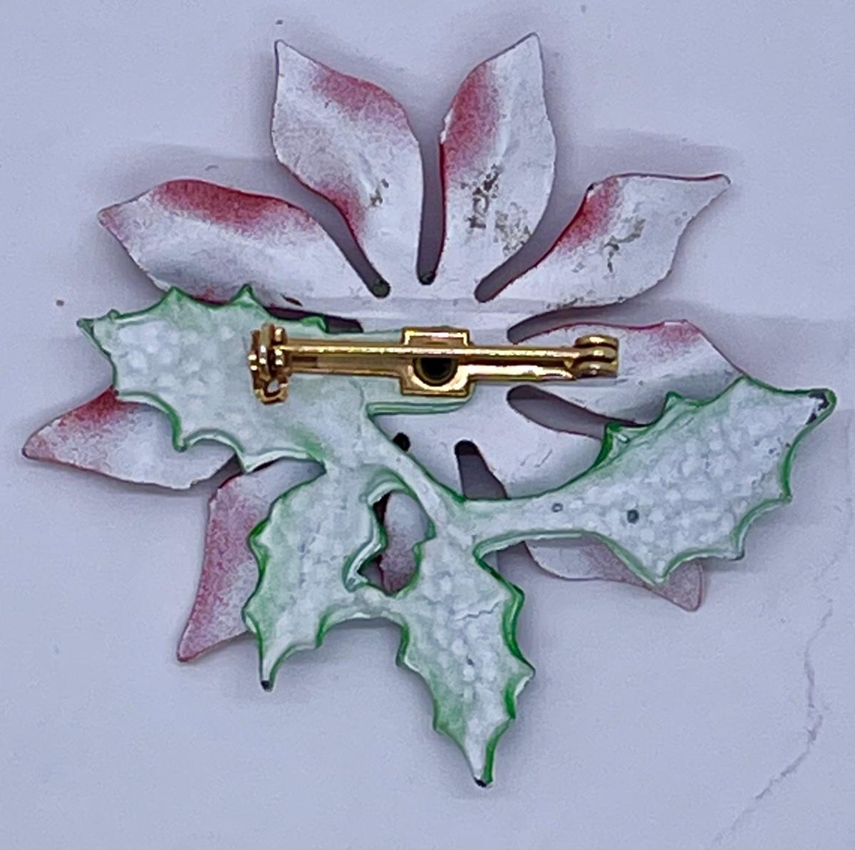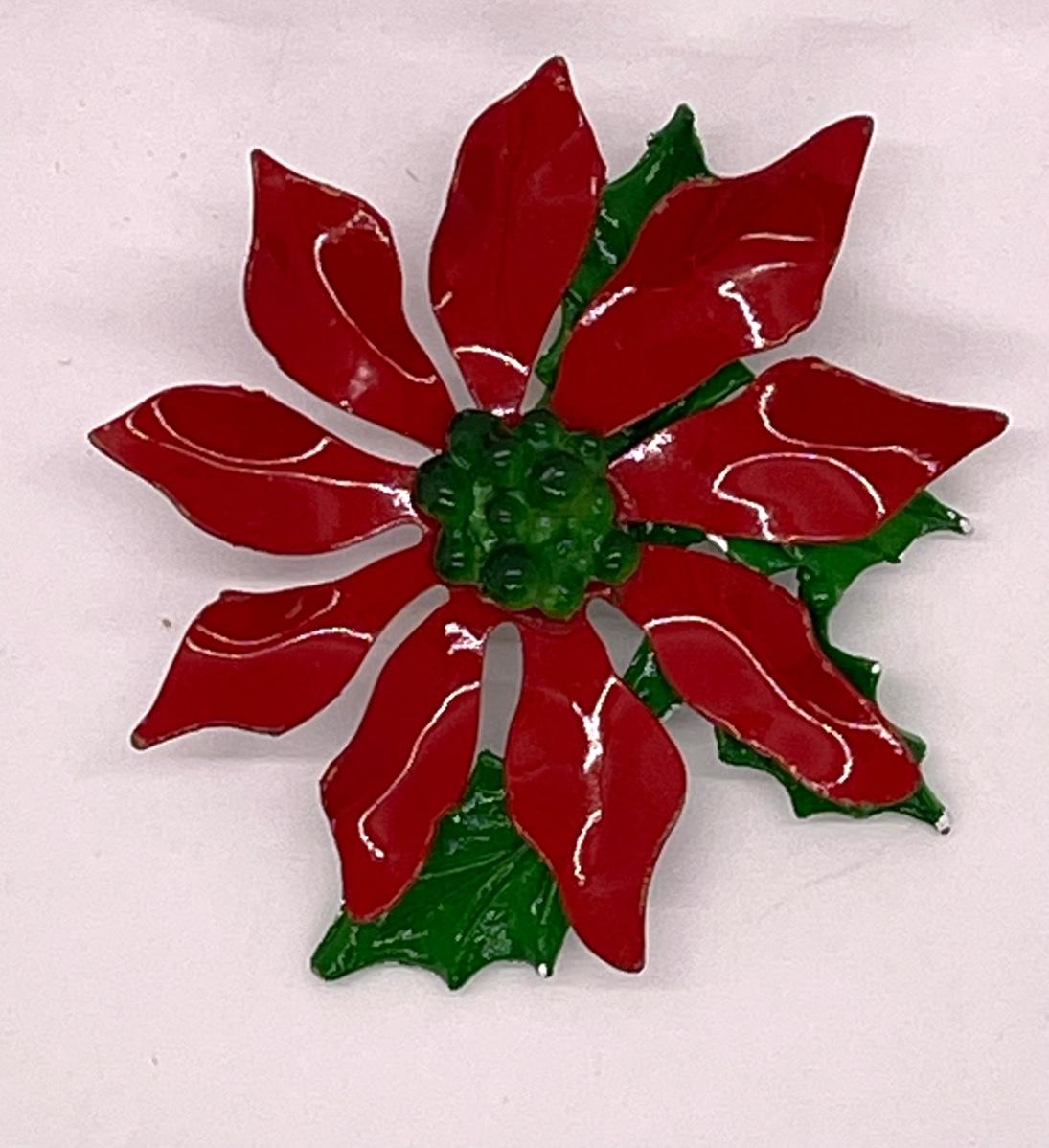 Vintage Red & Green Poinsettia Brooch Pin