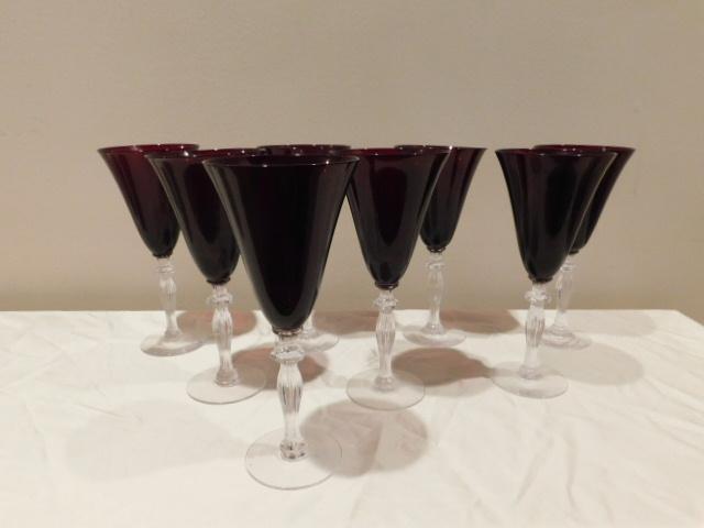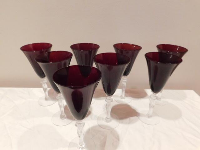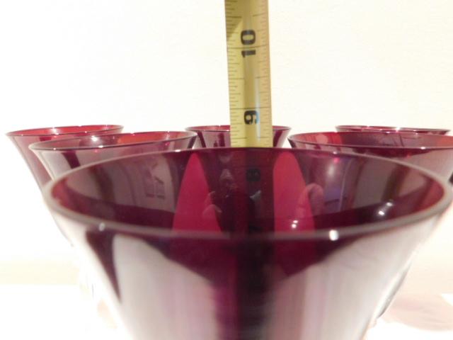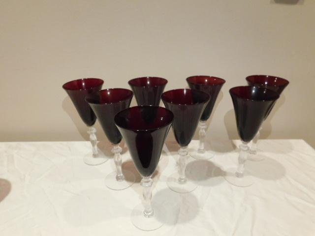 Vintage Red Long Stem Wine Glasses 8 Pieces