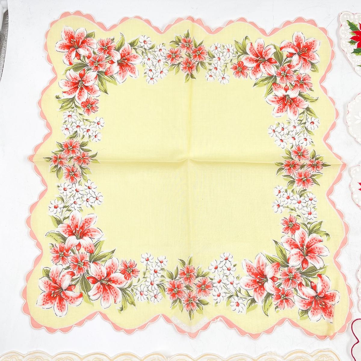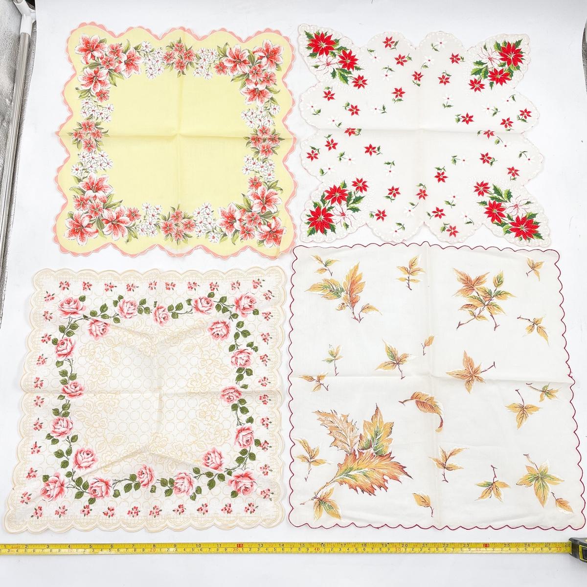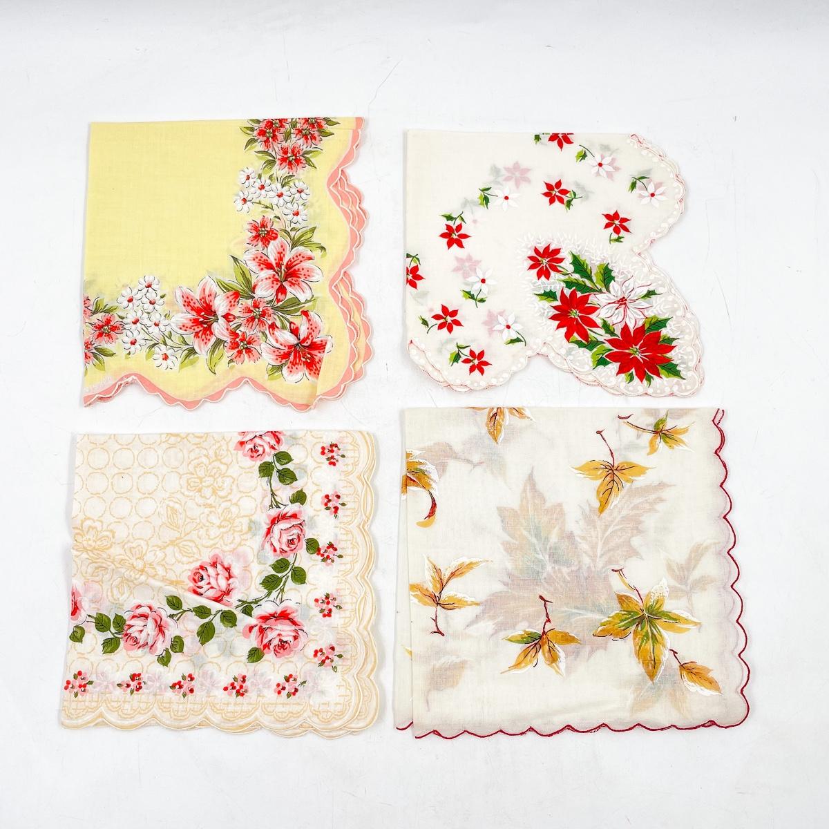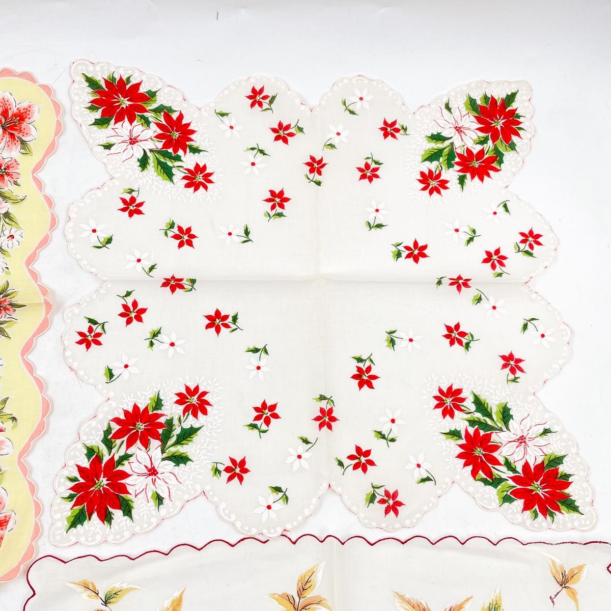VINTAGE RED & ORANGE FLORAL HANDKERCHIEFS