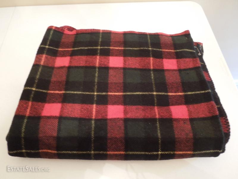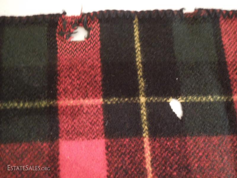 Whip stitch edge. 100% wool. No odors. Has several holes along outer edge only. Nice material.