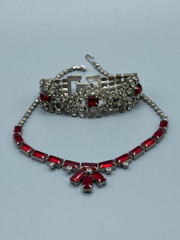 Vintage Red Rhinestone Choker and Bracelet YD#013-1120-00012