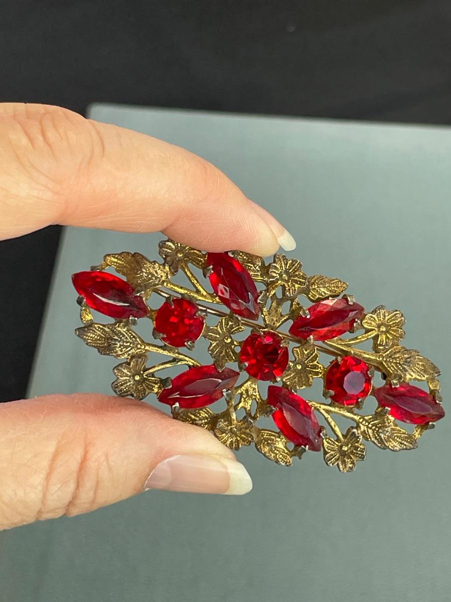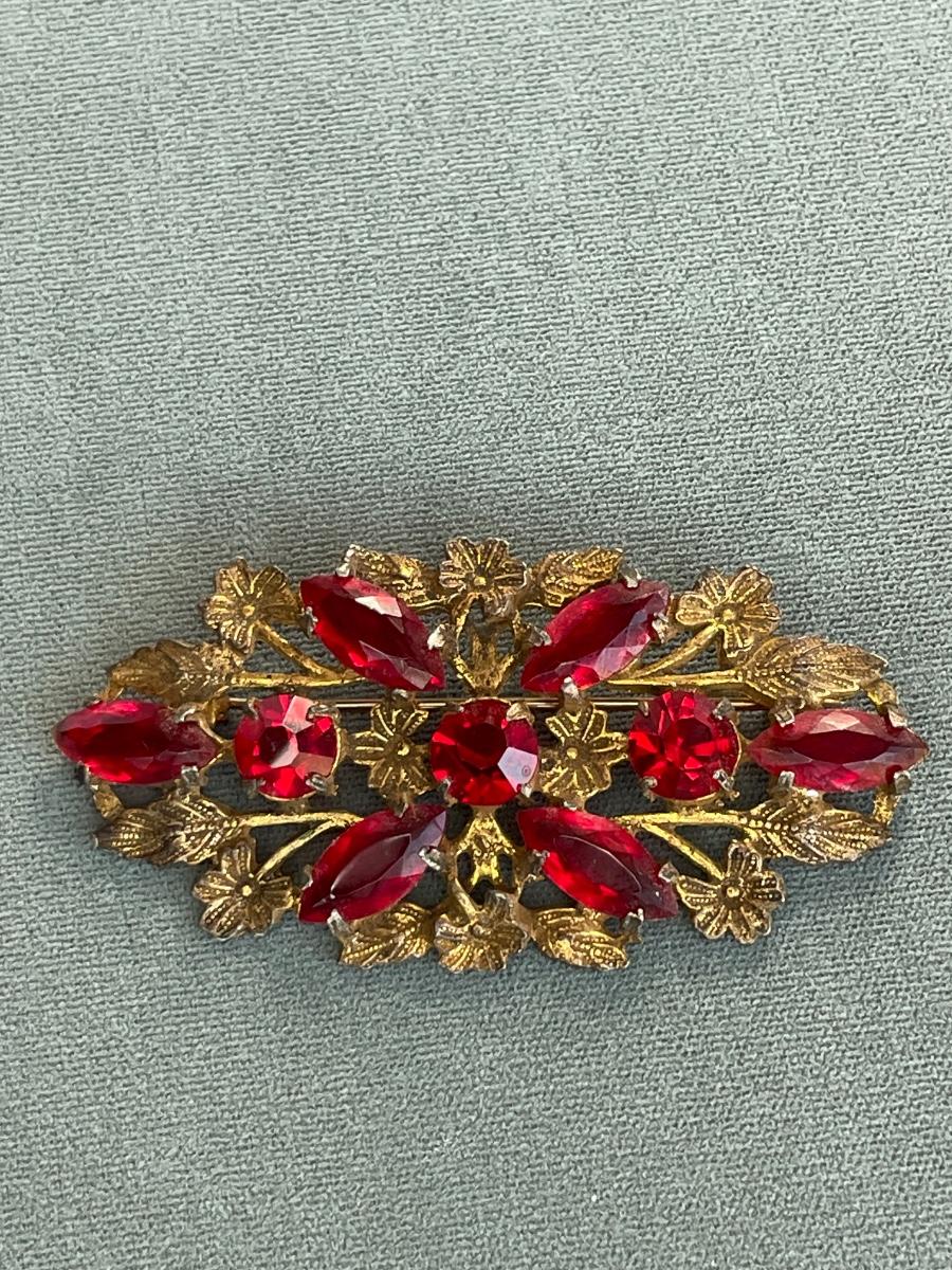 Vintage Red Rhinestone Pin