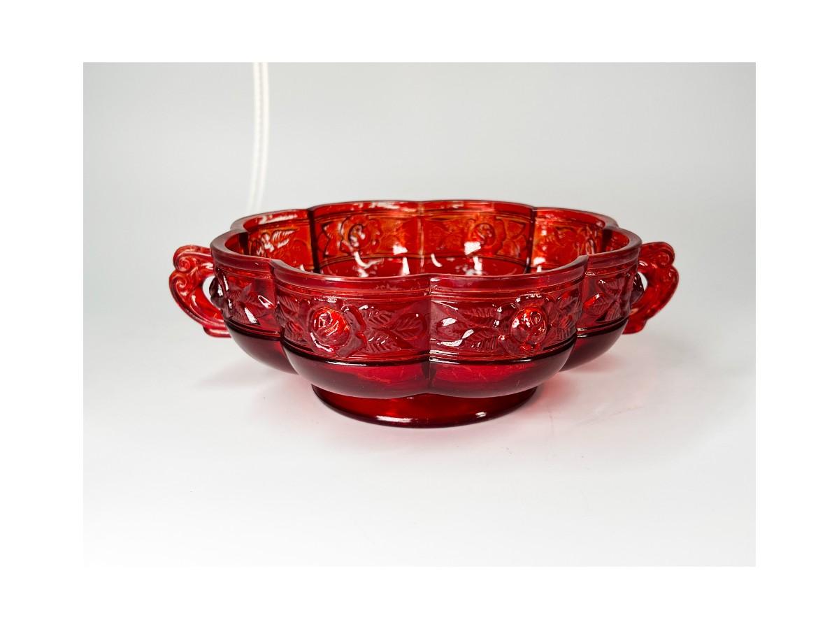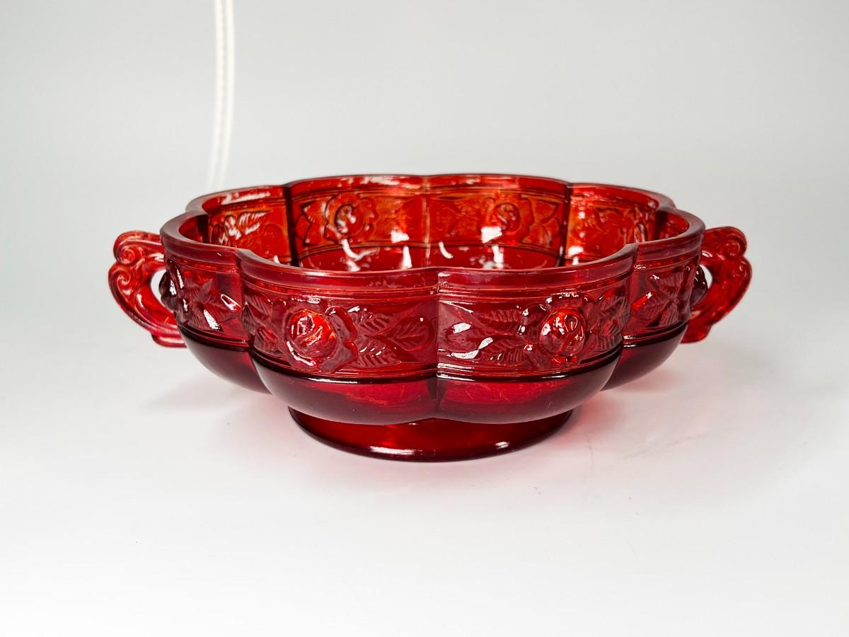 Vintage Red Rosebud Flower Glass Decorative Bowl