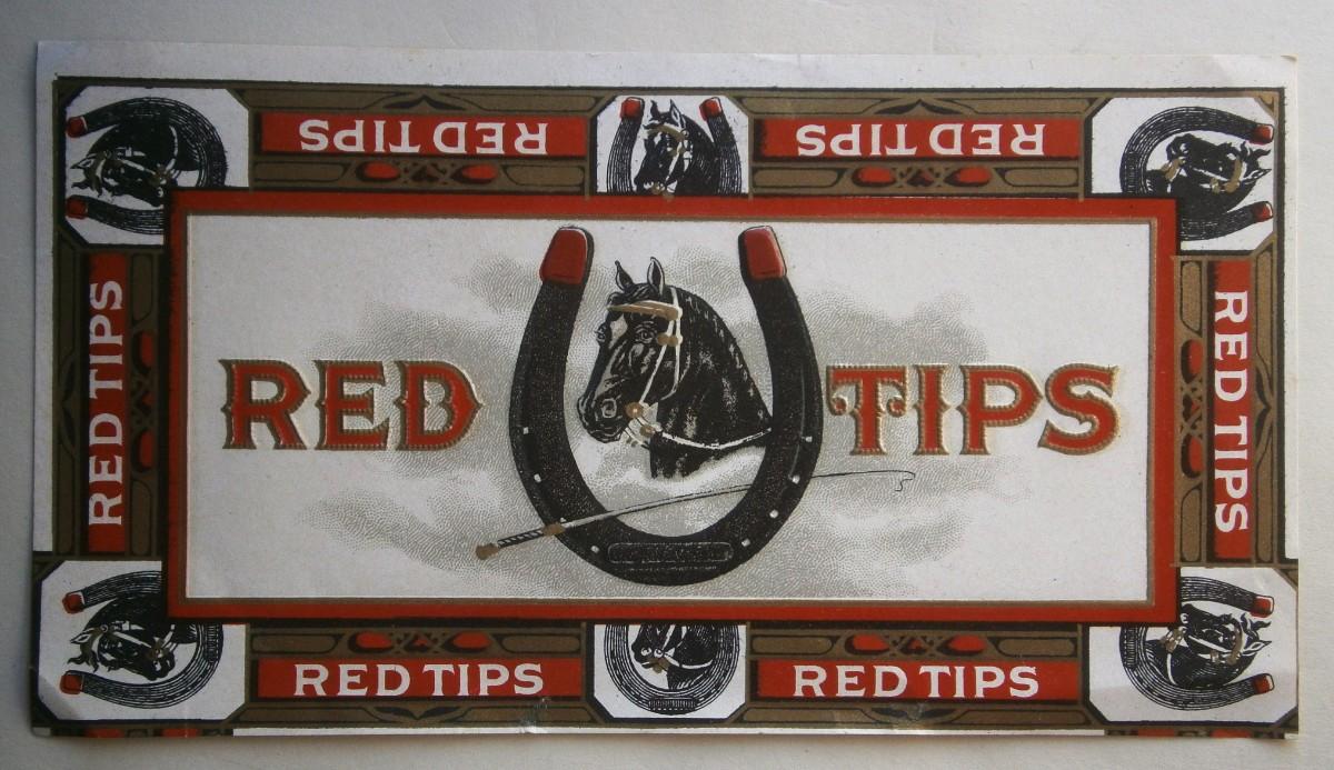 Vintage "RED TIPS" Cigar Label, 6 1/2 x 3 1/2 in. embossed paper.