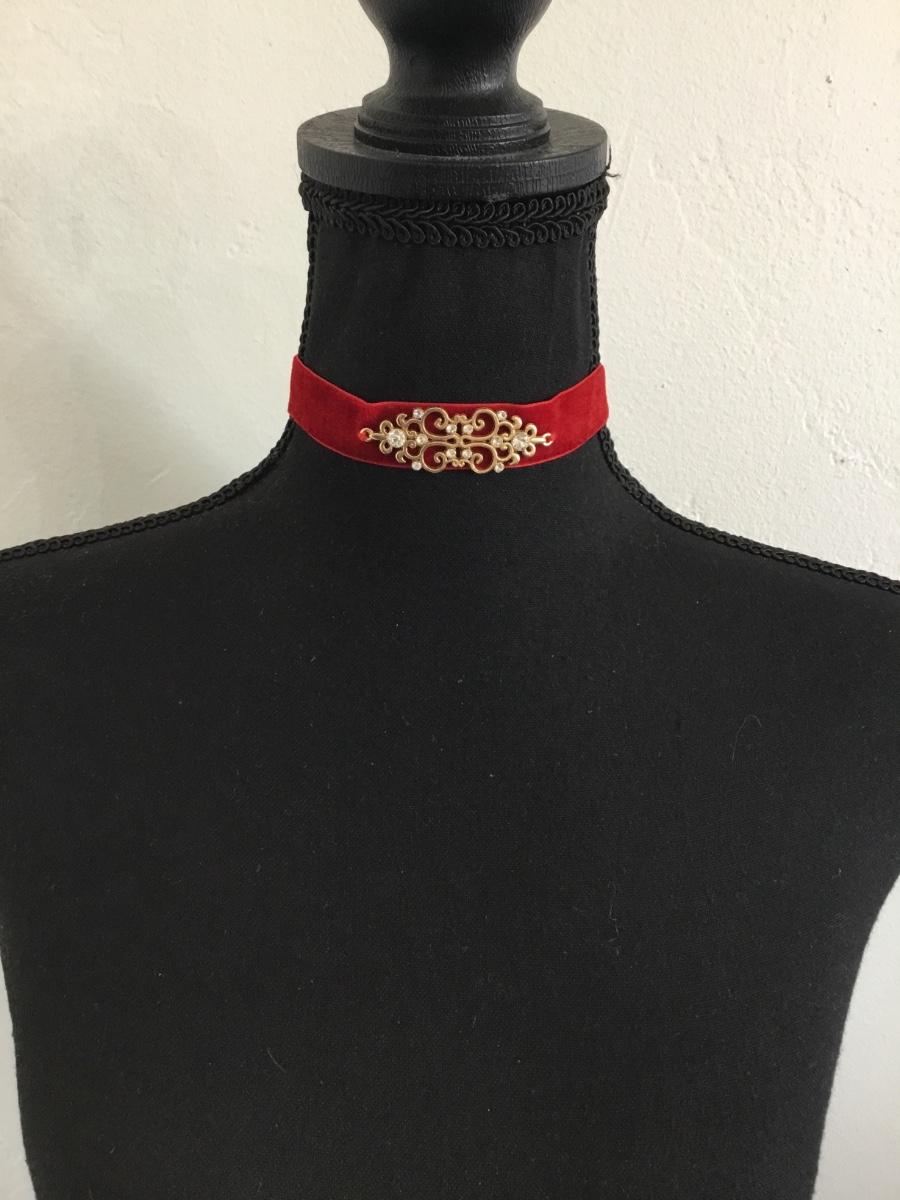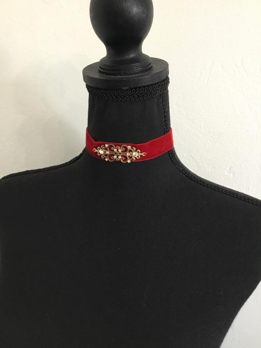 Vintage red velvet choker Victorian style