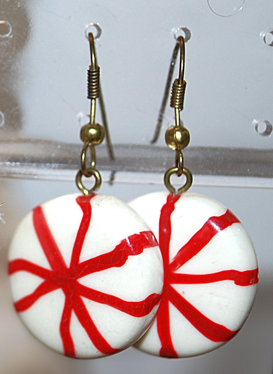 Vintage RED & WHITE PEPPERMINT EARRINGS Pair (¾" Diam.) with a Wire Hook Clasp