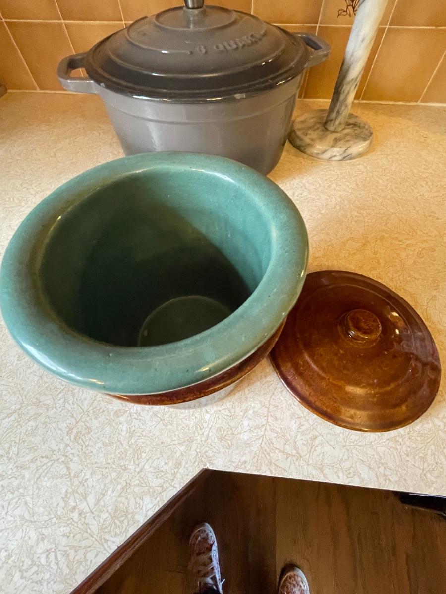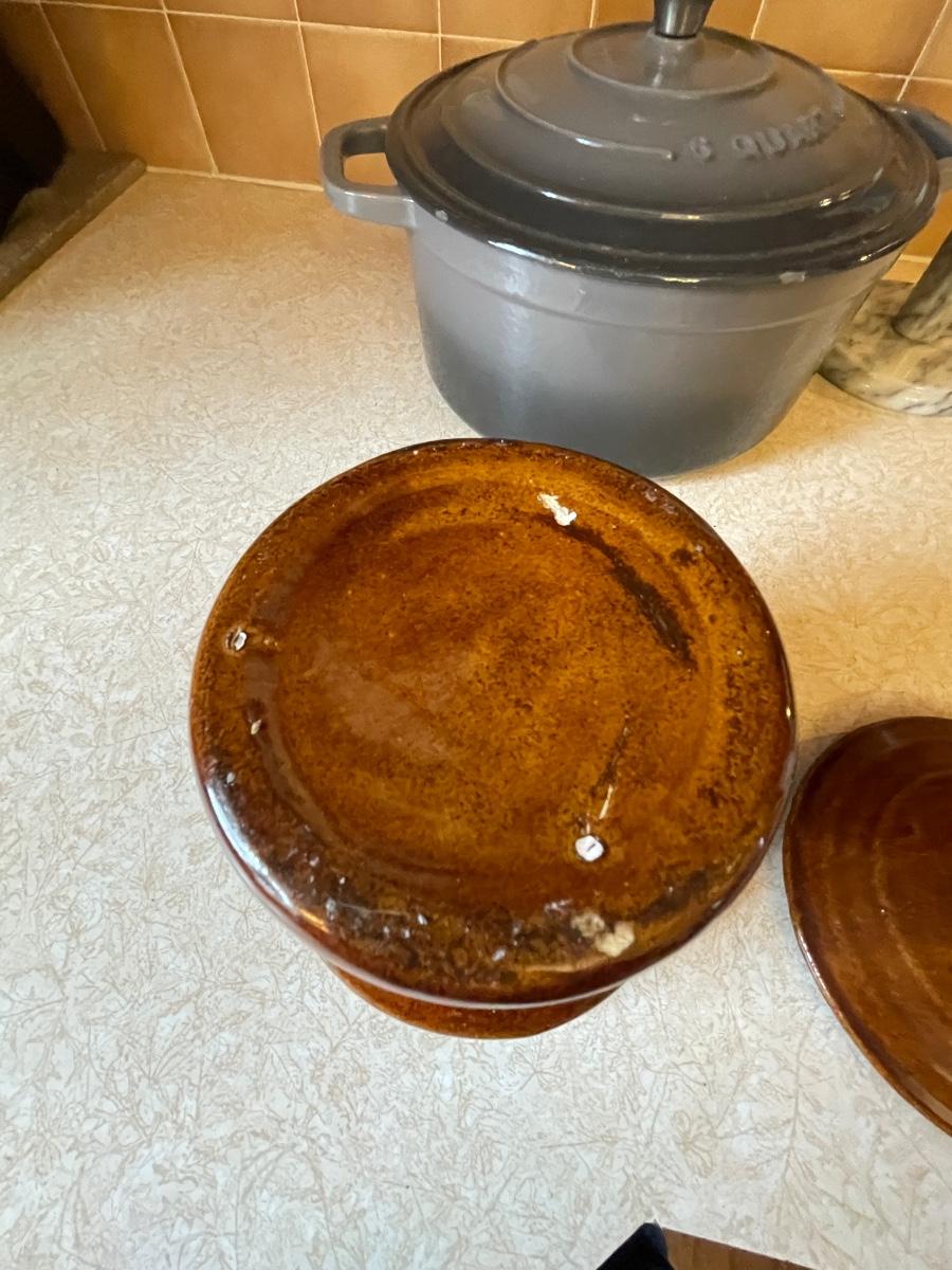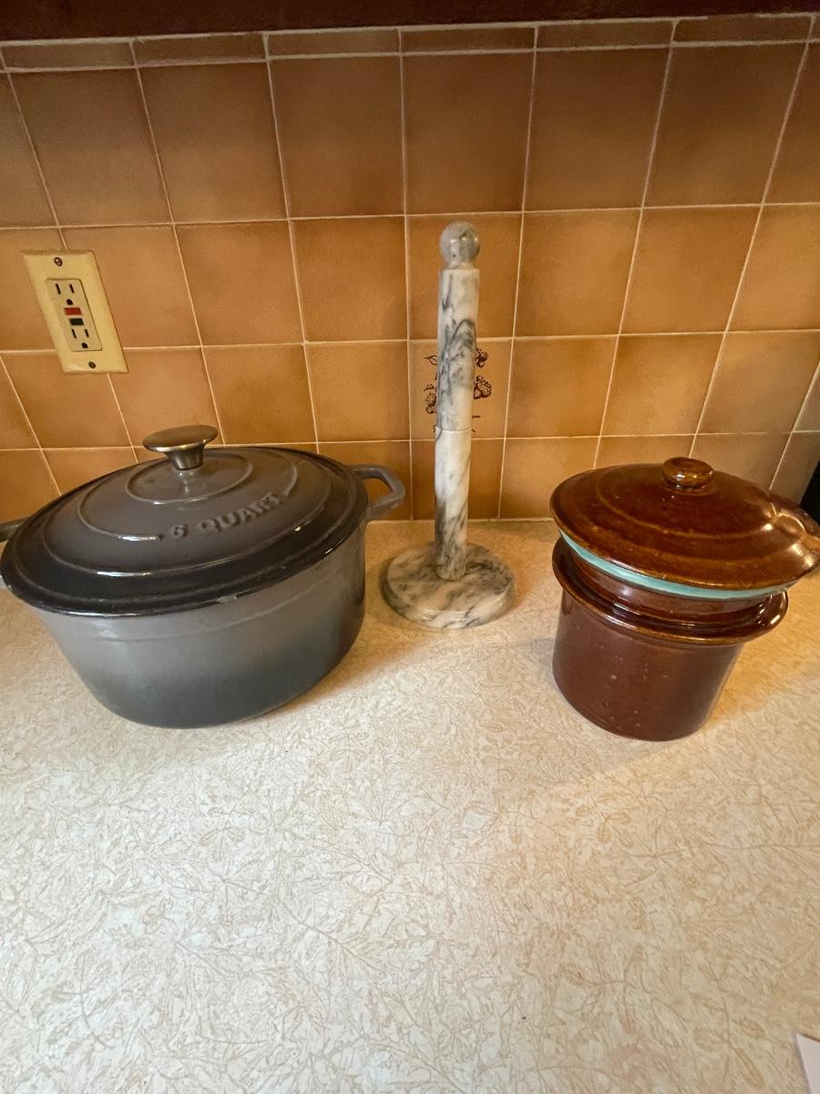 ENAMELED CAST IRON DUTCH OVEN, VINTAGE RED WING VILLAGE POTTERY