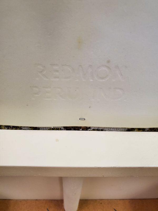 Redmond Peru, Ind can be seen on the inside of the lid.
