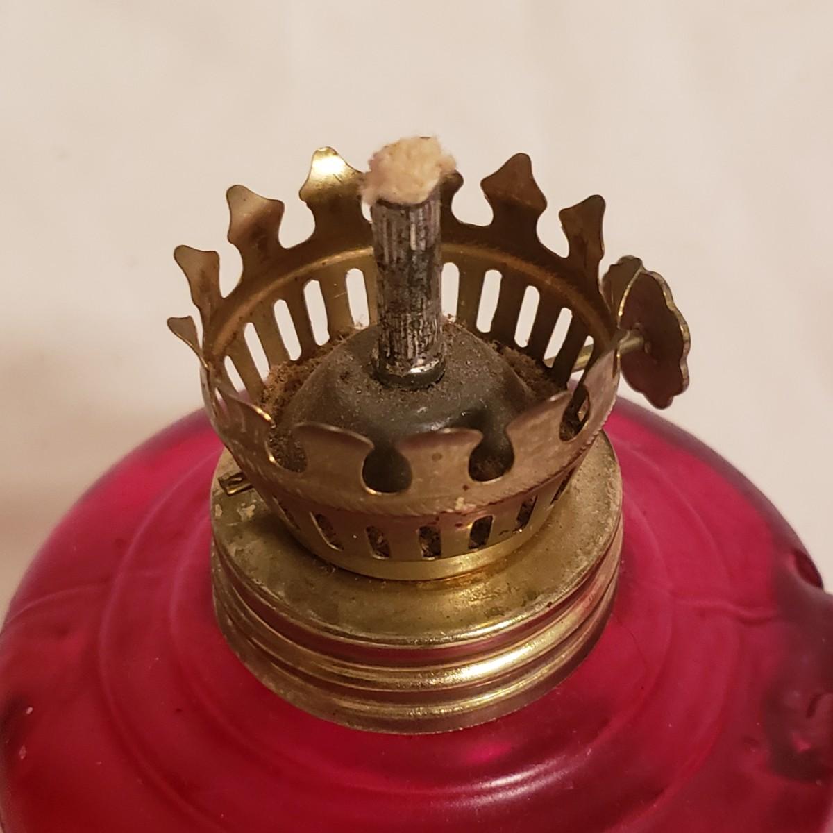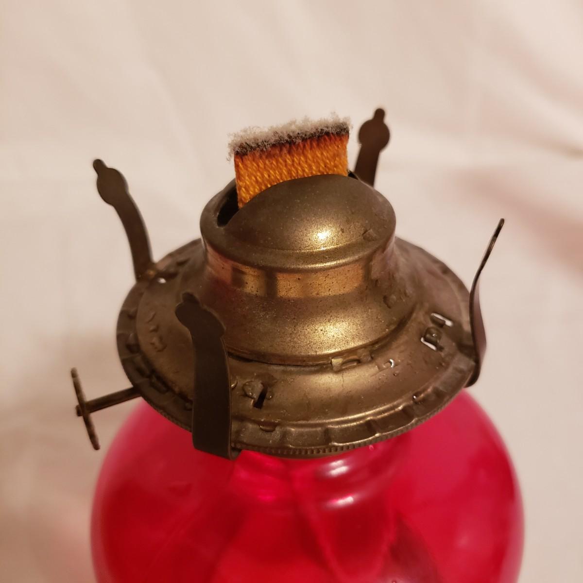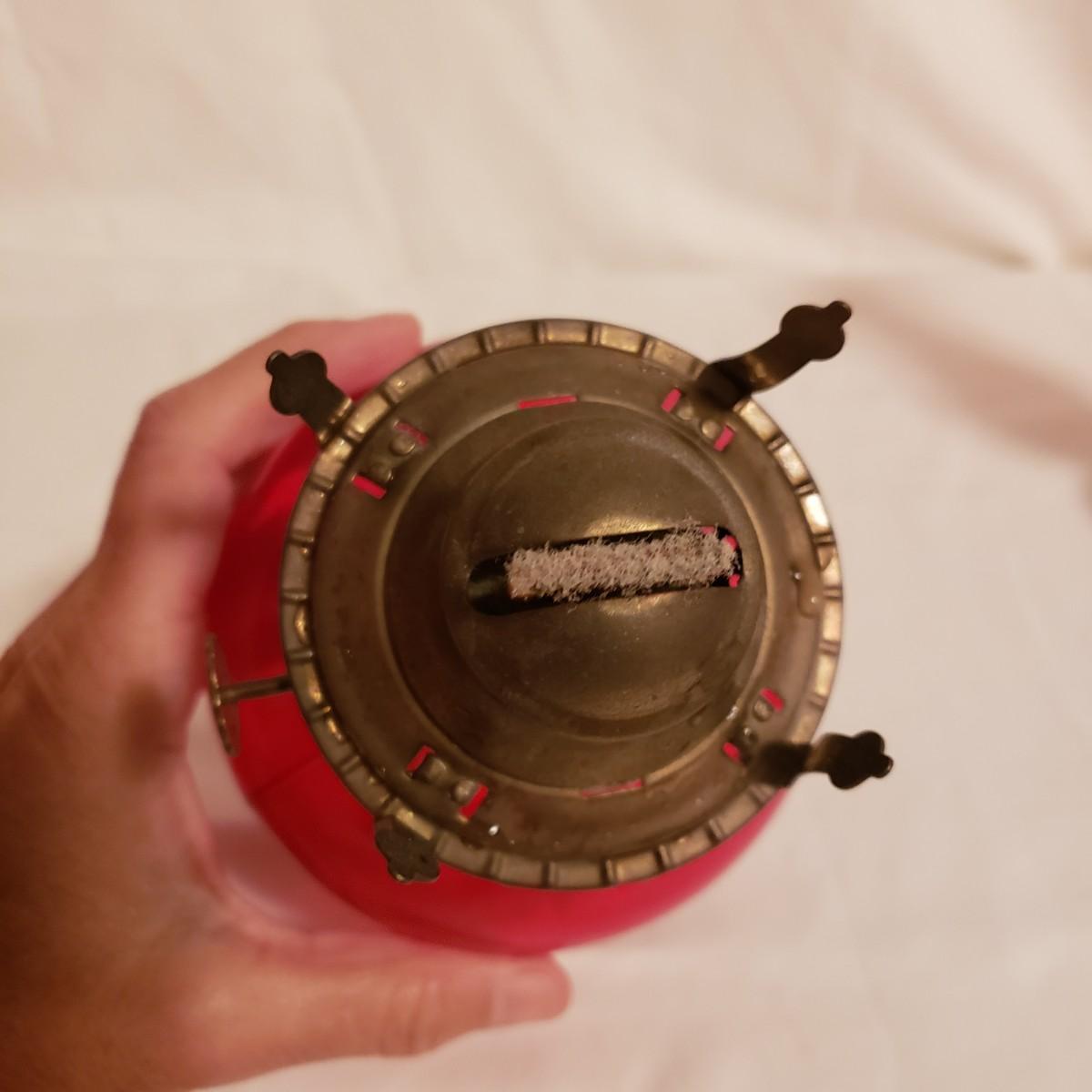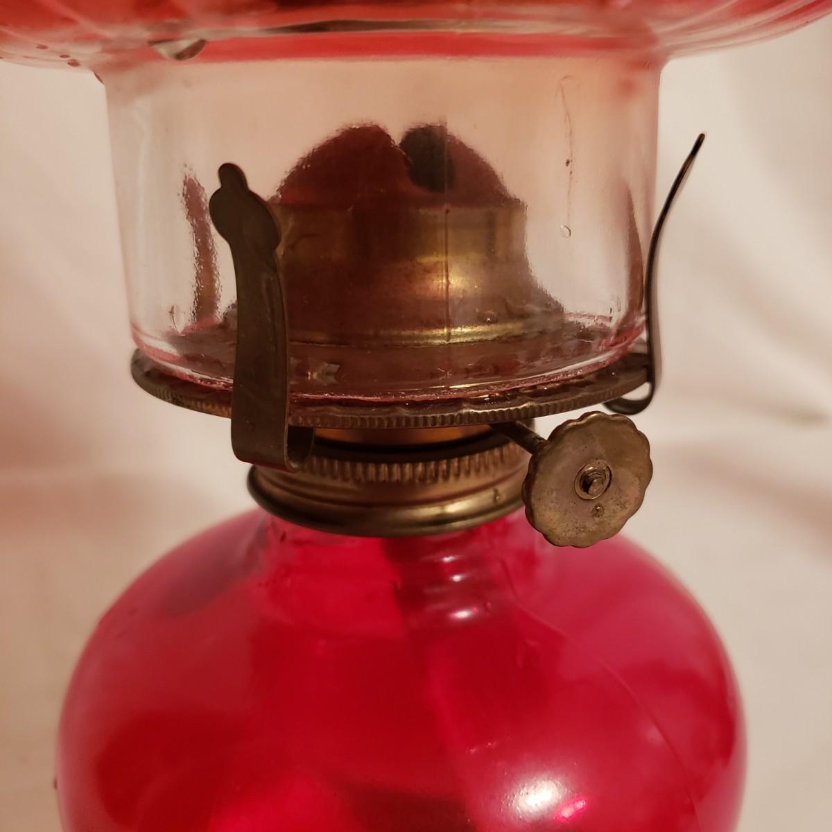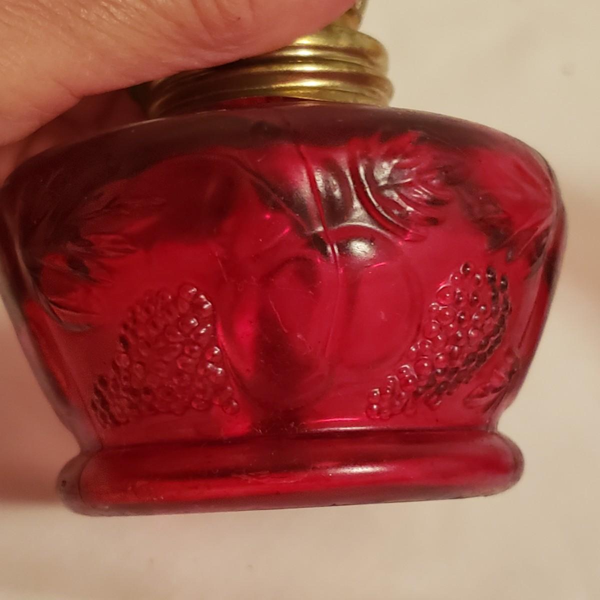 This eight piece lot features red and yellow umbra glassware. The pair of red/yellow umbra bud vases are perfect for your yard flowers! The pair of small red, scallop top vases measure 4" x 3.5"H. The largest oil lamp appears to never had been used. The hurricane glass has a spiral texture to it. The smaller lamp made in Hong Kong also appears to never had been used. The last two pieces are a possible Jeannette Glass bowl and lidded candy dish. The bowl measures approximately 10" x 6" x 5"H. There is a part on the bottom where the red finish chipped off. The same happened on the candy dish. See pictures for details.